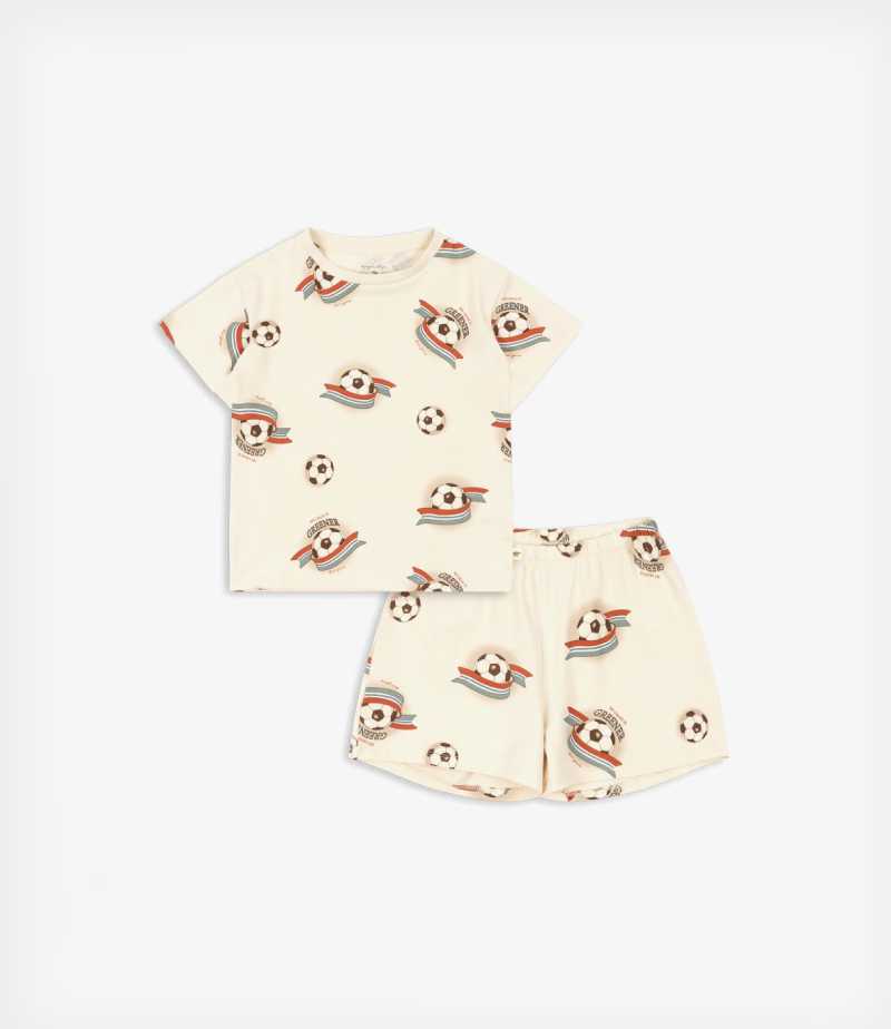 Βασικό σετ με ασορτί μπλουζάκι και σορτσάκι από απαλό ύφασμα οργανικού βαμβακιού.