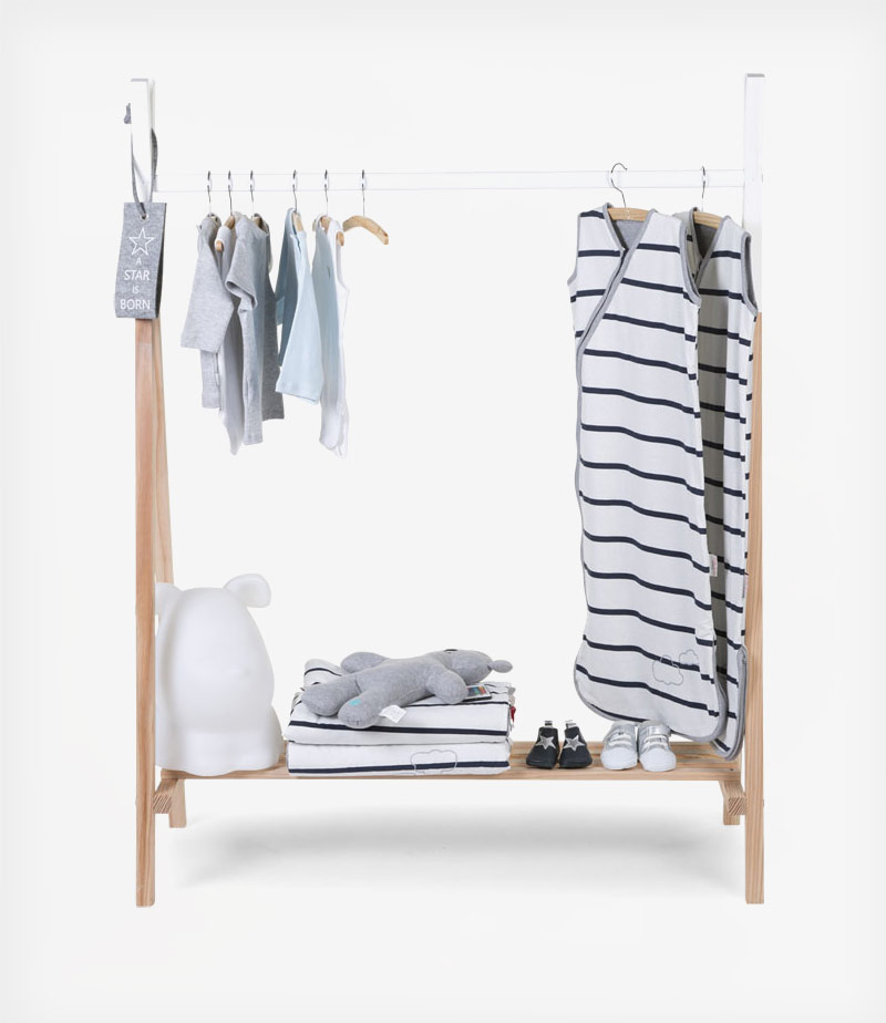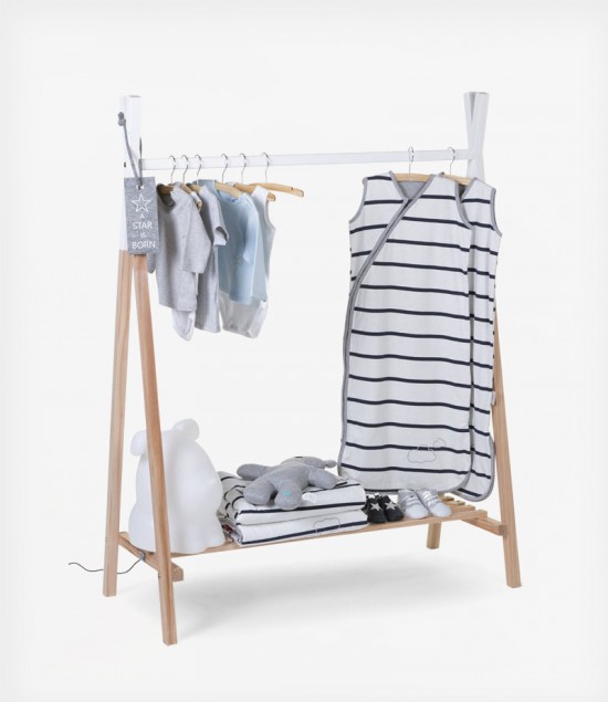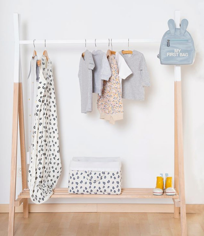 Διαθέτει ένα ράφι στο κάτω μέρος και μια ξύλινη ράβδο στην κορυφή για να κρεμάτε τα ρούχα του παιδιού σας.