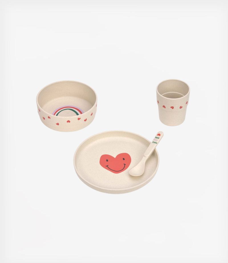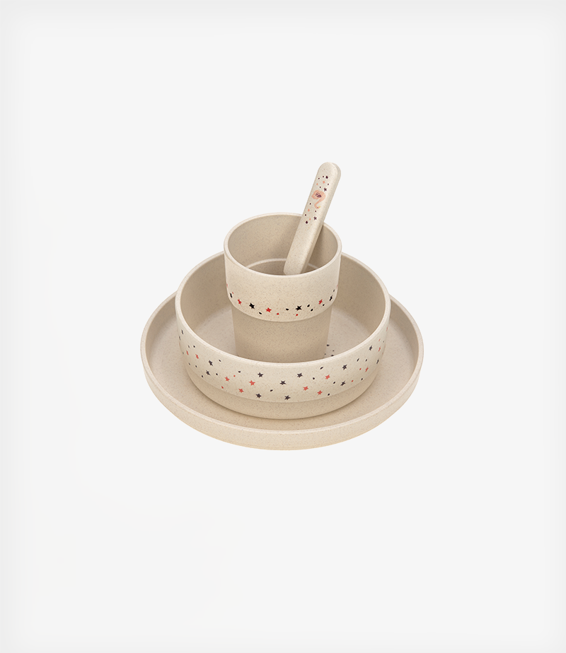 Το σετ περιλαμβάνει πιατάκι, ποτηράκι, μπωλάκι και κουταλάκι.
