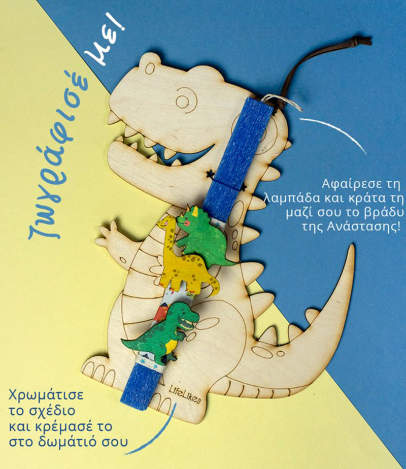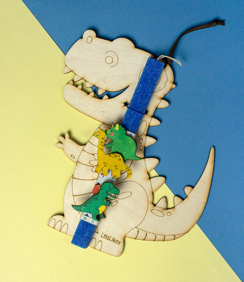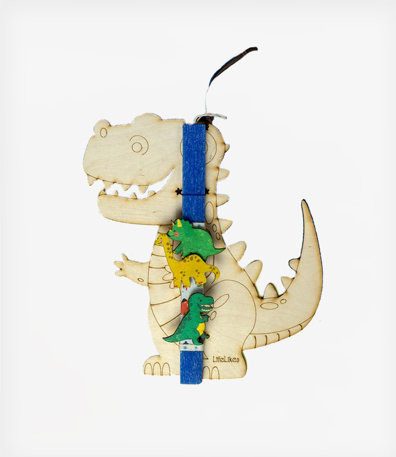 Λαμπάδα Lifelikes για το αγαπημένο σου βαφτιστήρι, που αγαπάει τους δεινόσαυρους, επάνω σε πρωτότυπο κάδρο που μπορεί να το ζωγραφίσει για να στολίσει το δωμάτιό του.