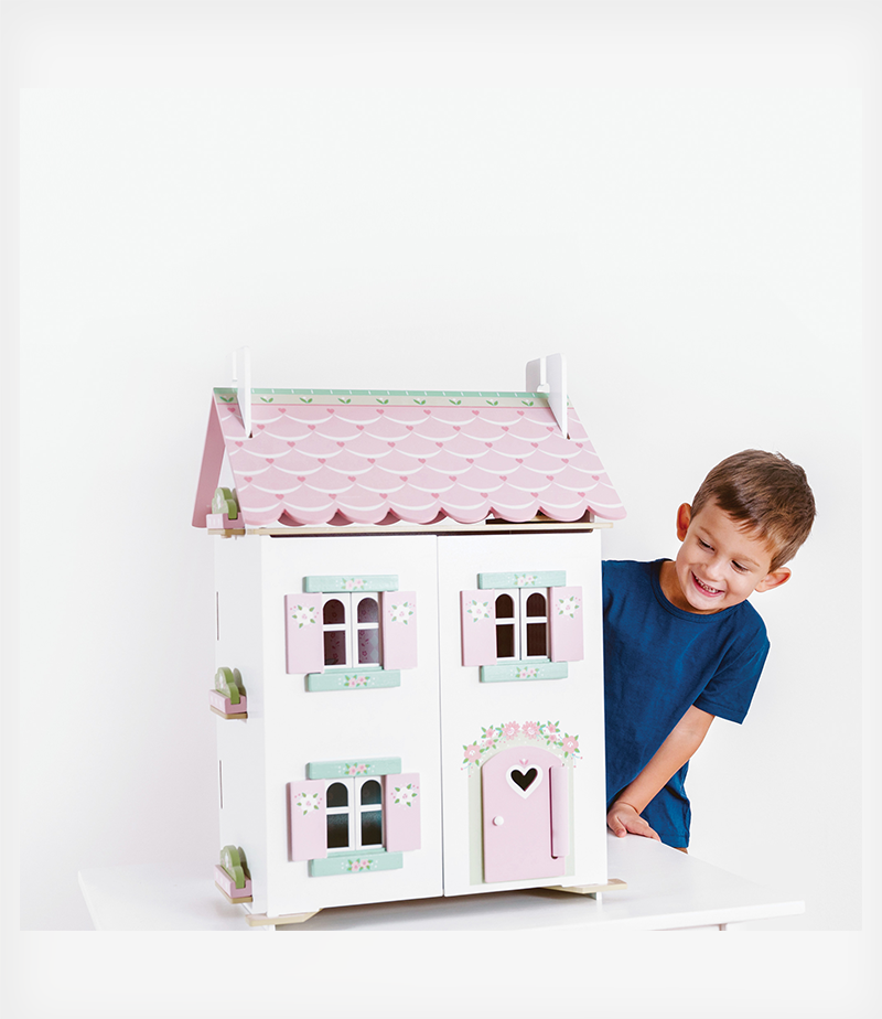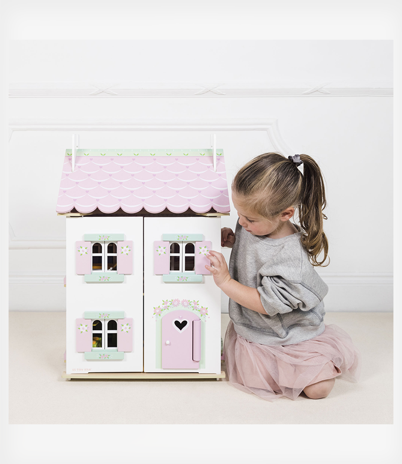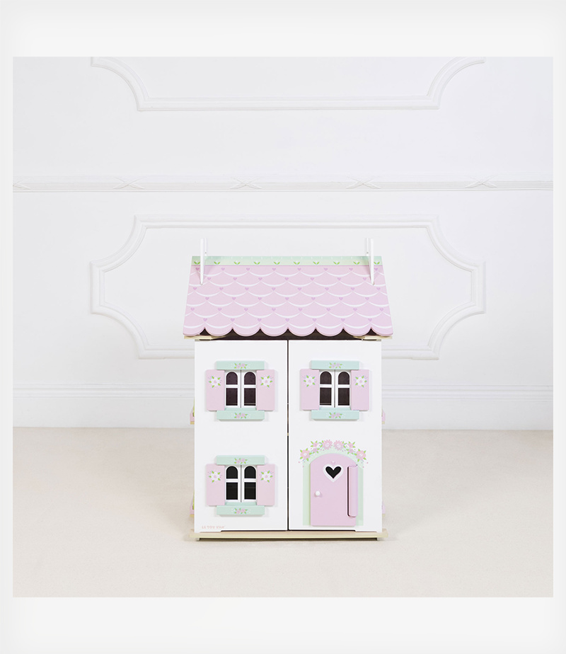 Το Sweetheart Cottage είναι ένα πλήρως χρωματισμένο και διακοσμημένο ξύλινο κουκλόσπιτο χρησιμοποιώντας απαλά ροζ χρώματα και φρέσκια λευκή παλέτα. Τα χαρακτηριστικά περιλαμβάνουν άνοιγμα και κλείσιμο παραθυρόφυλλων, παράθυρα, στέγη και πόρτα. Λεπτομερές εσωτερικό με χρωματική διαίρεση πάνω / κάτω, διαφορετική ταπετσαρία και ωραία απεικόνιση σε κάθε δωμάτιο. Το κουκλόσπιτο είναι πλήρες με σετ επίπλων και αξεσουάρ 37 κομματιών.