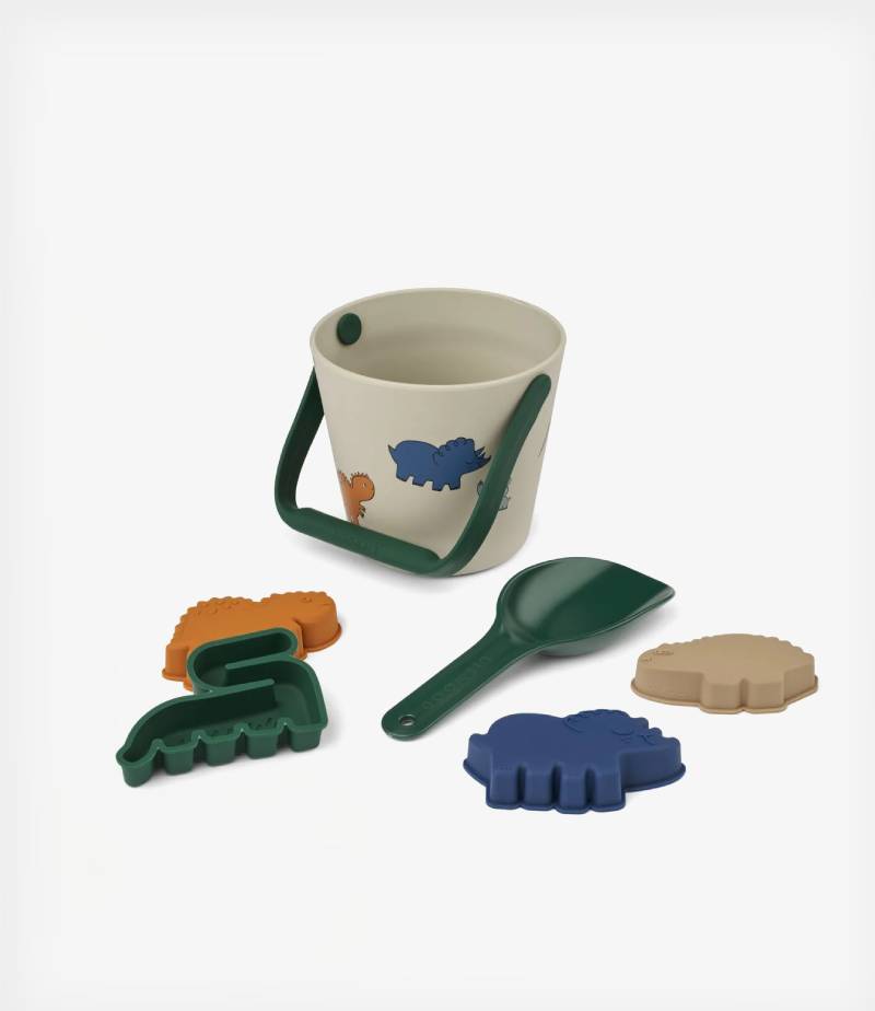 Το σετ παραλίας Gilma, διακοσμημένο με καλοκαιρινά prints, είναι ιδανικό για μια μέρα στην παραλία ή δίπλα στην πισίνα. Το σετ περιλαμβάνει έναν κουβά, ένα φτυάρι και τέσσερα καλούπια άμμου από μαλακή σιλικόνης, το καθένα από τα οποία ταιριάζει με το χαρακτηριστικό θέμα Dinosaurs. Κατασκευασμένο από ανθεκτικά και μακράς διαρκείας υλικά, αυτό το σετ υπόσχεται ώρες διασκέδασης και δημιουργικότητας για τα παιδιά.