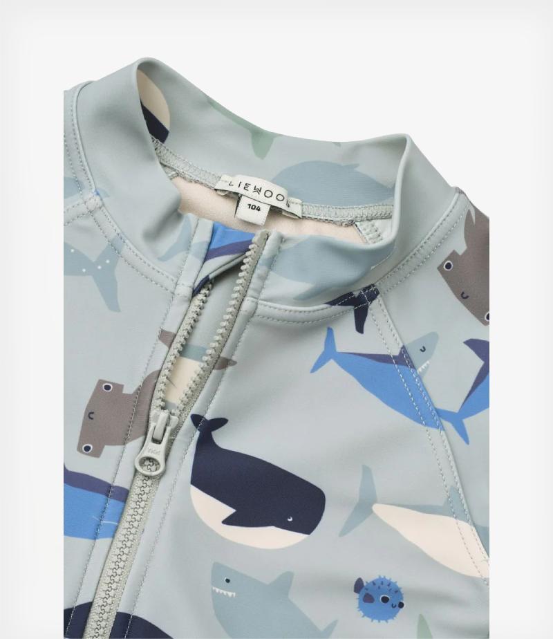 Η προστασία UV40+ βοηθά στην προστασία του ευαίσθητου παιδικού δέρματος από τον ήλιο, ενώ το μπροστινό φερμουάρ κάνει την εφαρμογή και την αφαίρεση του μαγιό εύκολη και γρήγορη. Το ύφασμα περιέχει 82% ανακυκλωμένο πολυεστέρα μετά την κατανάλωση, πιστοποιημένο κατά GRS, συμβάλλοντας σε μια πιο βιώσιμη επιλογή ένδυσης.