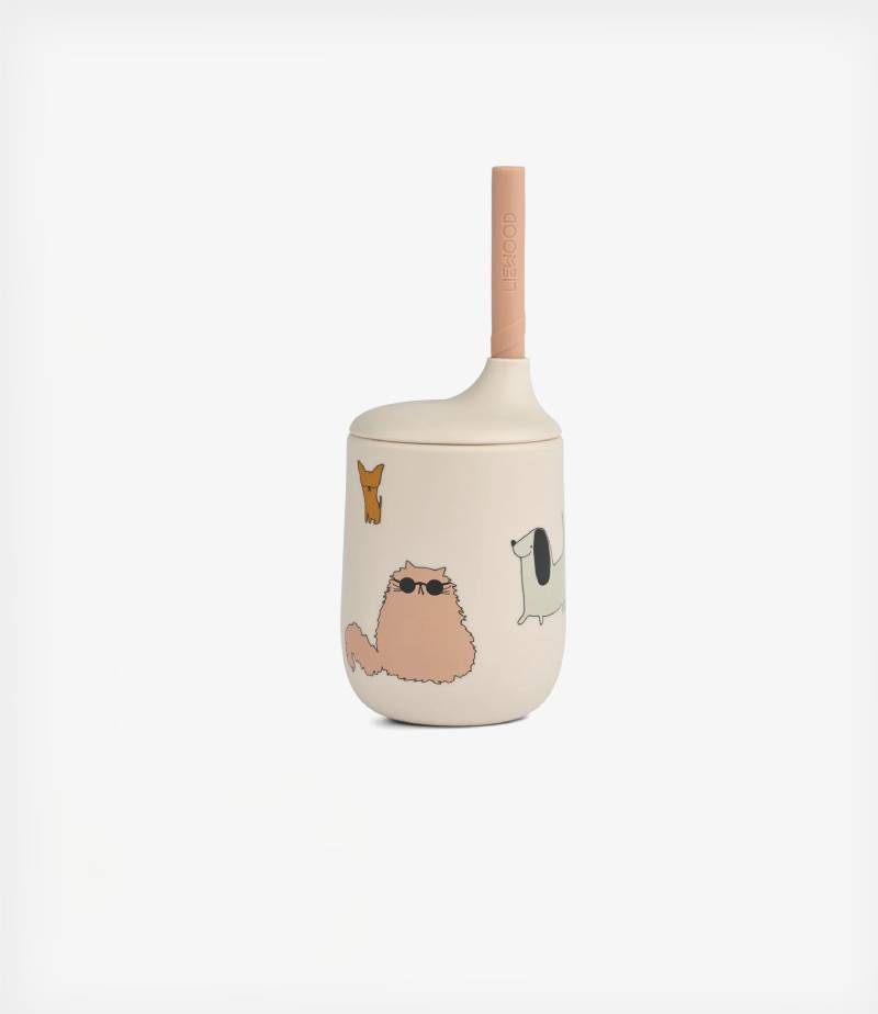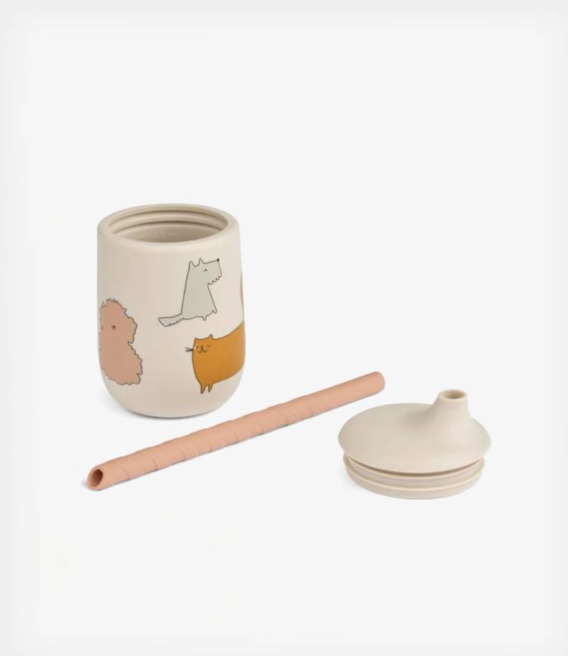 Liewood Ποτηράκι σιλικόνης με καλαμάκι Ellis Sippy Cup – Cats and Dogs/Sandy 230ml