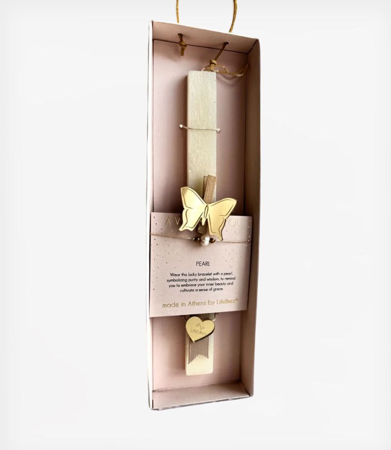 Η λαμπάδα συνοδεύεται από ένα βραχιόλι – charm με πέρλα.