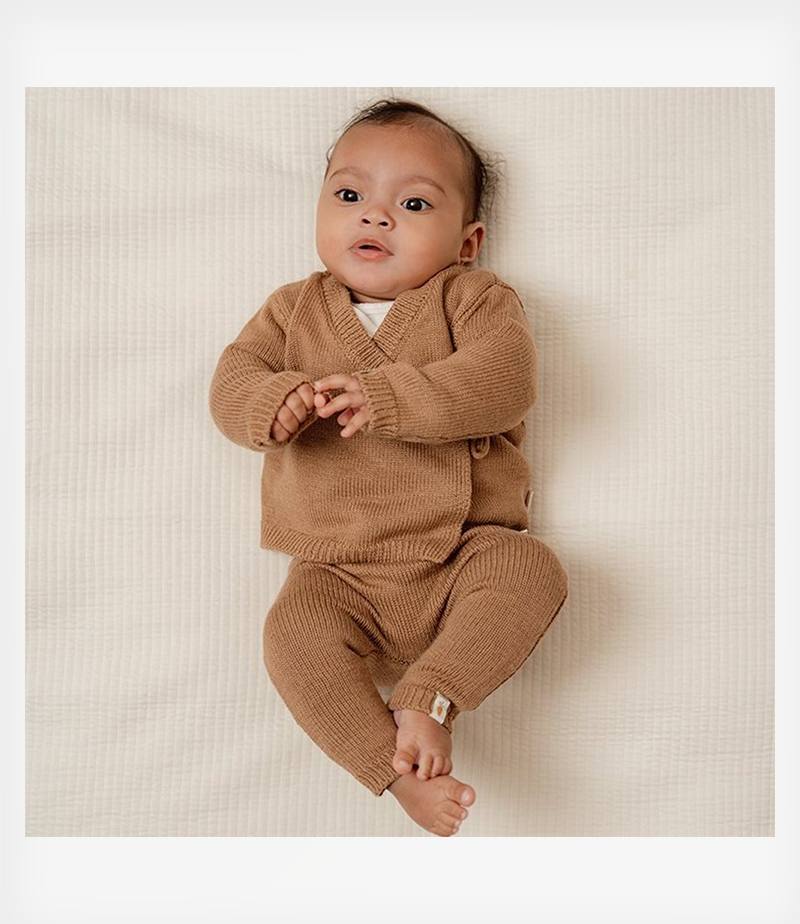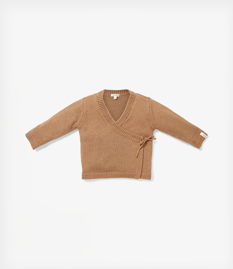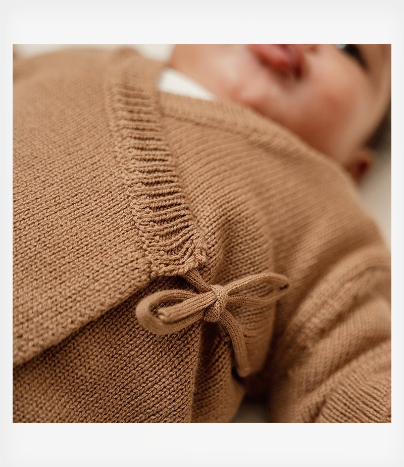 Τυλιχτείτε ζεστά! Αυτή η ζακέτα σας τυλίγει με απαλότητα και ζεστασιά. Μπορεί να ανοίξει και να κλείσει εξ ολοκλήρου από μπροστά με κορδέλα και δεν χρειάζεται να το τραβήξετε πάνω από το κεφάλι, καθιστώντας το ιδιαίτερα κατάλληλη για το νεογέννητό σας. Το πλεκτό οργανικό ύφασμα σε όμορφο καφέ χρώμα είναι ζεστό, άνετο και κομψό.
