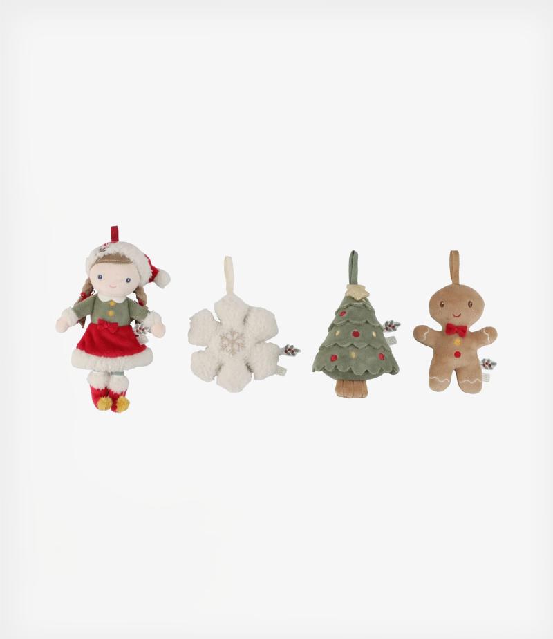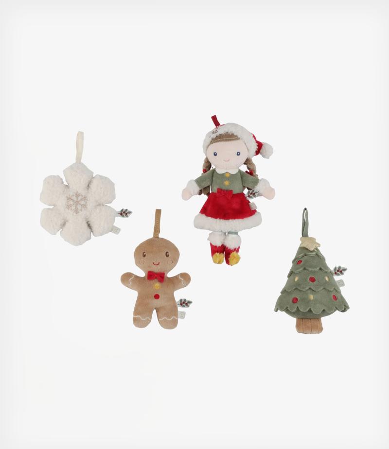 Στο κουτί θα βρείτε τη Χριστουγεννιάτικη κούκλα Rosa, έναν χαρούμενο μπισκοτάνθρωπο, ένα γιορτινό δέντρο και μια απαλή νιφάδα χιονιού – όλα προσεκτικά σχεδιασμένα για να δώσουν στην εορταστική σας διακόσμηση την τέλεια πινελιά.