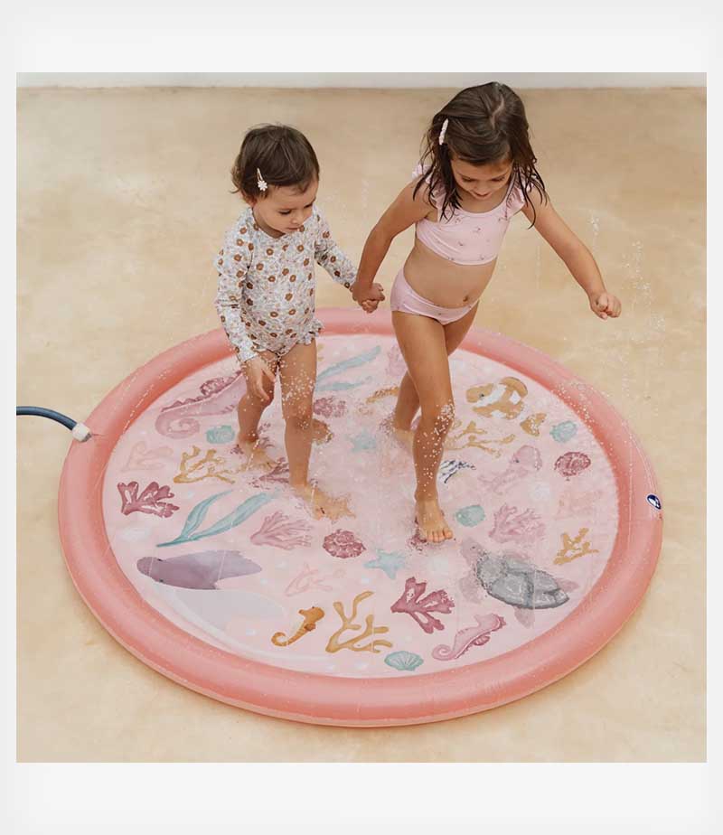 Τις ζεστές μέρες του καλοκαιριού, αυτό το υπέροχο ροζ φουσκωτό στρώμα παιχνιδιού με ψεκαστήρες θα σας δροσίσει και θα σας διασκεδάσει!