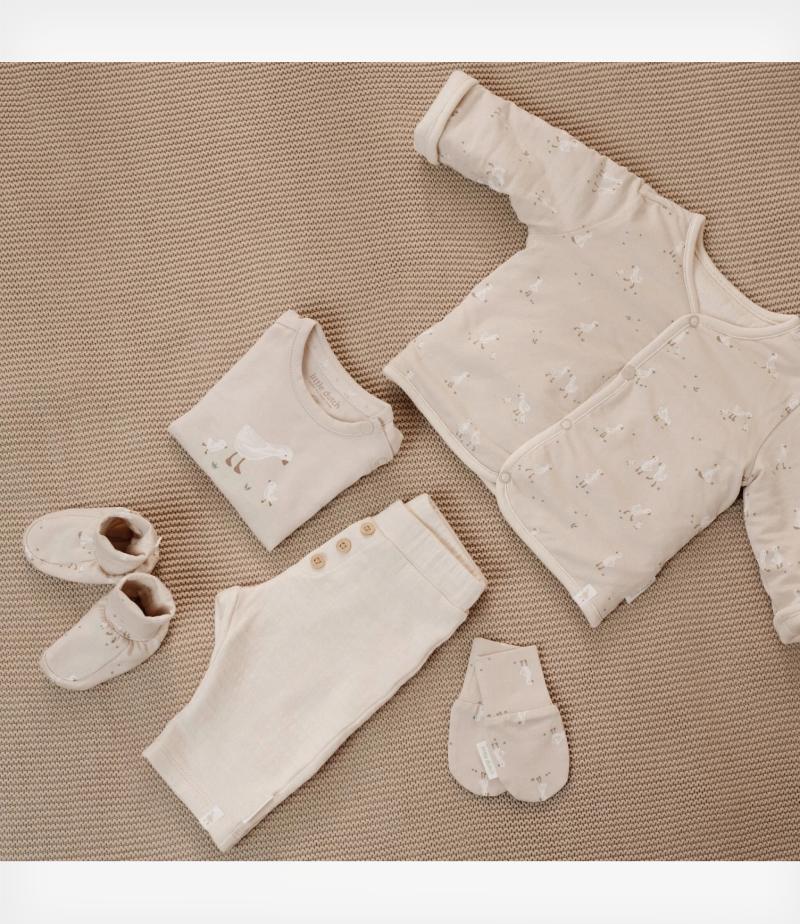 Το απαλό χρώμα της άμμου ως βάση εξασφαλίζει ότι μπορούν να συνδυαστούν με όλα τα είδη της συλλογής Newborn Naturals. Διατίθενται σε ένα μέγεθος.