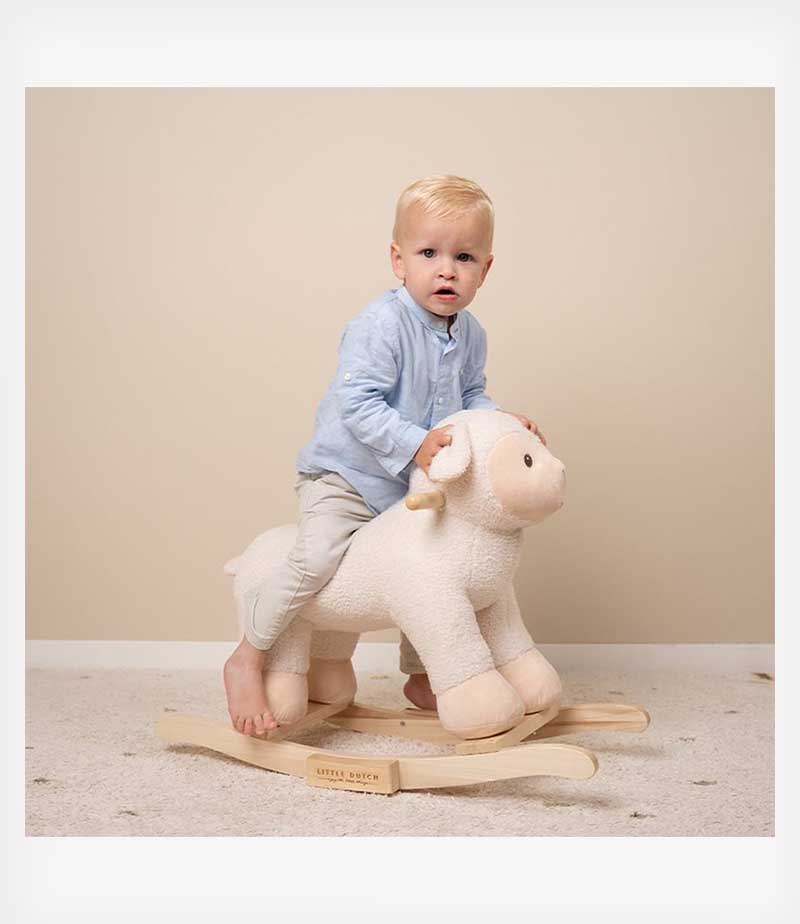 Το μικρό σας θα λατρέψει το νέο κουνιστό πρόβατο της Little Dutch! Με το απαλό τρίχωμα και τη όμορφή του εμφάνιση, το λικνιζόμενο πρόβατο προσκαλεί τα παιδιά να καθίσουν και να απολαύσουν μια απαλή λικνιστική κίνηση. Το στιβαρό ξύλινο πλαίσιο εξασφαλίζει σταθερότητα και ασφάλεια κατά τη διάρκεια του παιχνιδιού. Το κουνιστό πρόβατο είναι μια εξαιρετική προσθήκη σε κάθε δωμάτιο.