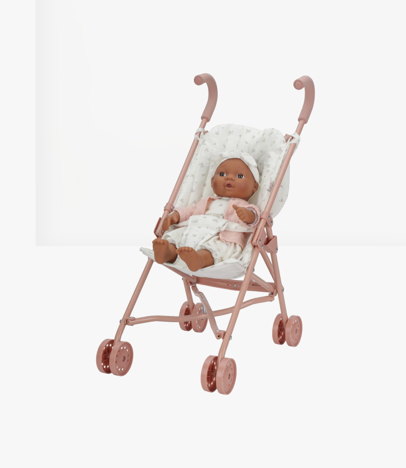 Το μεταλλικό καρότσι για κούκλες με ροζ σκελετό, ροζ λαβές και 4 ροζ ρόδες έχει σχεδιαστεί για να προάγει το ευφάνταστο παιχνίδι και να καλλιεργεί την αίσθηση ευθύνης για τους μικρούς ‘κηδεμόνες’. Μπορεί να διπλωθεί εύκολα, κάνοντας την αποθήκευση παιχνιδάκι.