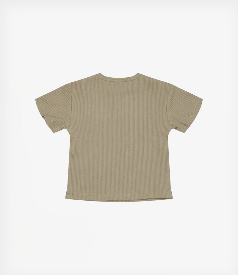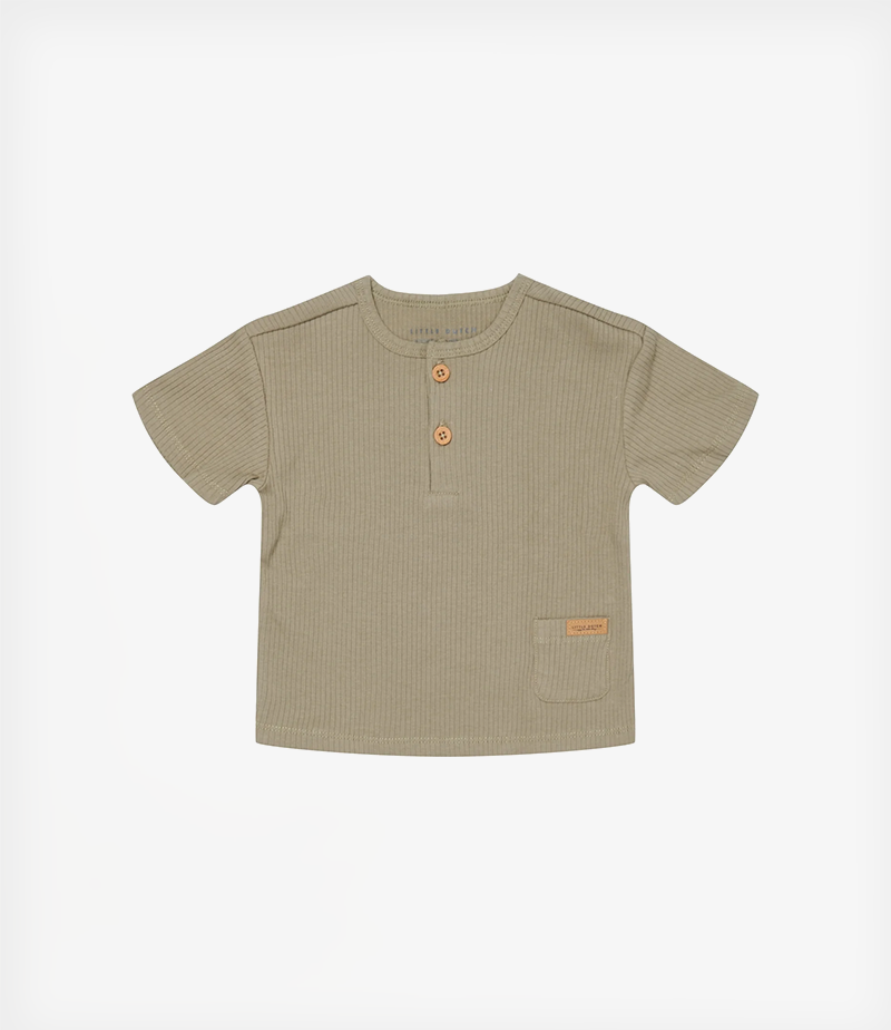 Αυτό το λαδί κοντομάνικο μπλουζάκι με κουμπάκια και τσεπούλα θα δείχνει τόσο όμορφο στο μωρό σας!