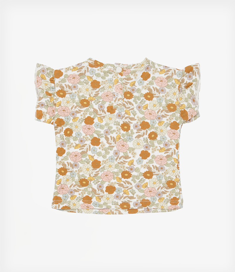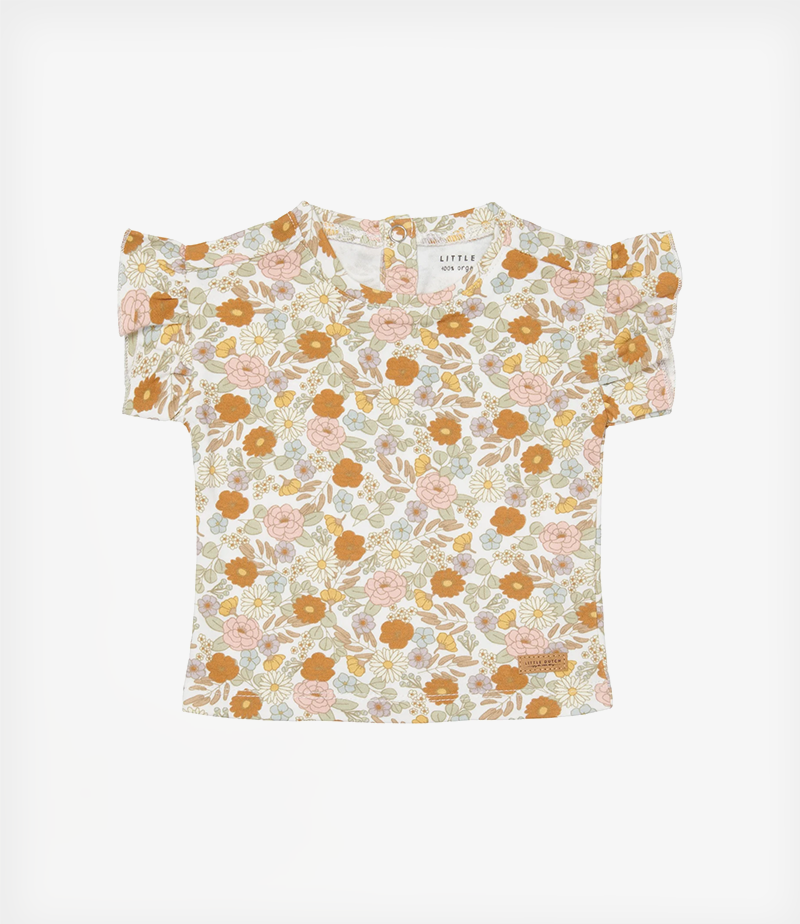 Αυτό το κοντομάνικο μπλουζάκι με βολάν και σχέδιο Vintage Little Flowers θα δείχνει τόσο όμορφο στο μωρό σας!