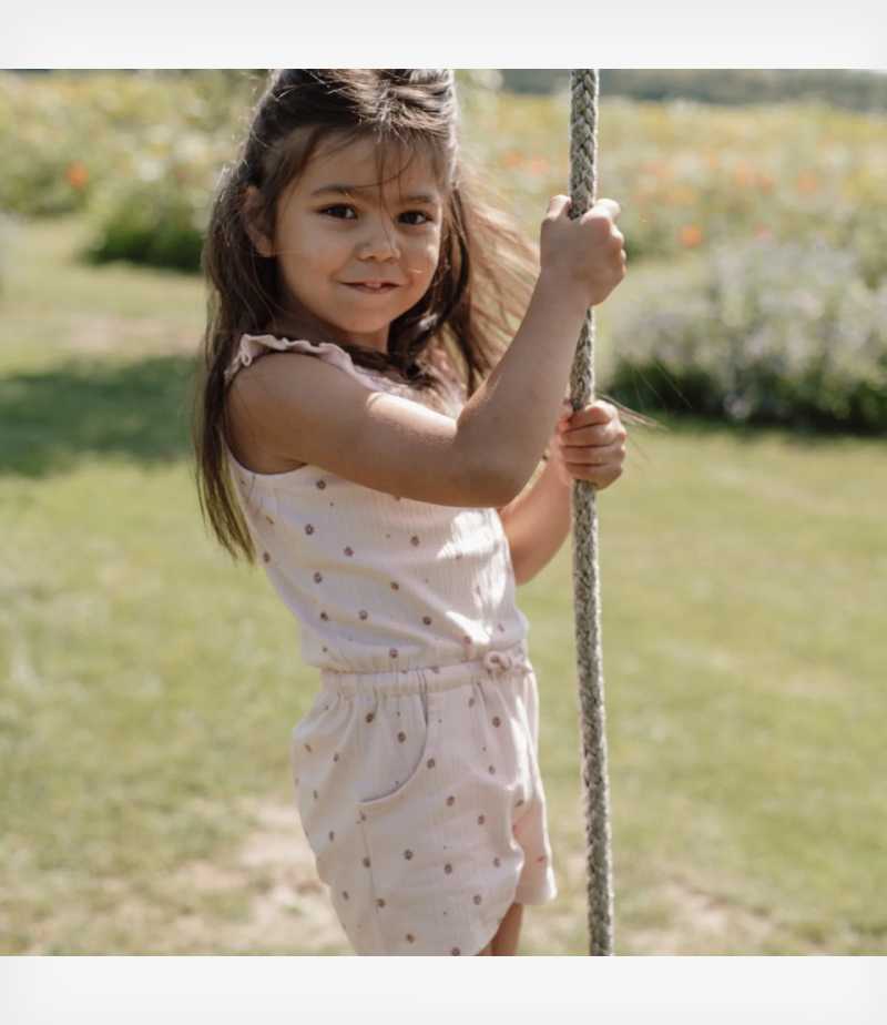 Φτιαγμένη από οργανικό βαμβάκι με απαλή υφή, προσφέρει άνεση και ελευθερία κινήσεων για ατελείωτο παιχνίδι και εξερεύνηση. Το ρομαντικό φλοράλ σχέδιο και η ντελικάτη λαιμόκοψη με βολάν χαρίζουν μια γλυκιά, παιχνιδιάρικη αίσθηση.