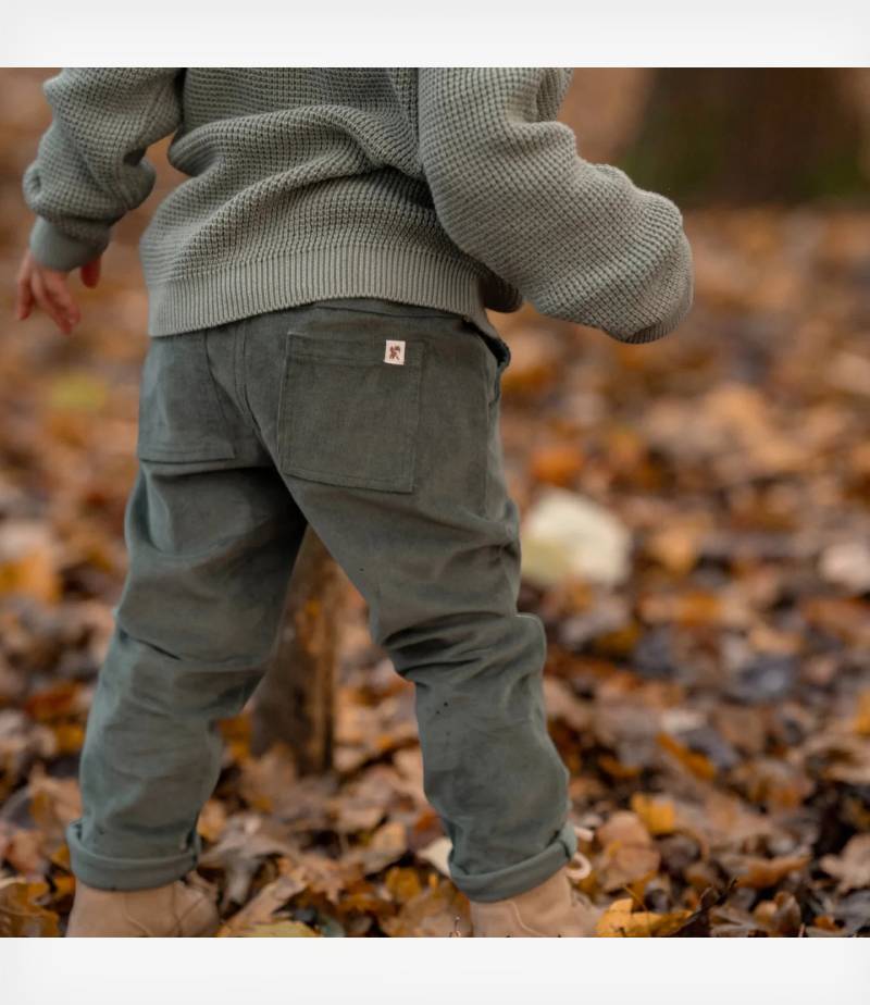 Ανακαλύψτε το απόλυτο παντελόνι από πράσινο κοτλέ ύφασμα, απαλό, ζεστό και ιδανικό για όλες τις περιπέτειες του μικρού σας!