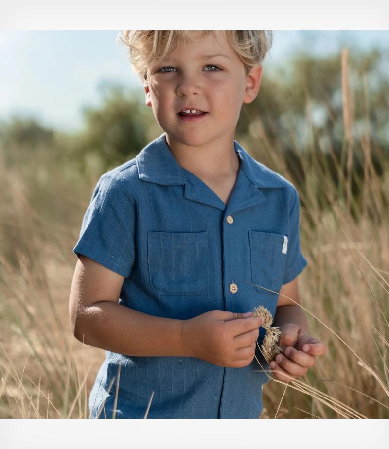 Αυτό το κοντομάνικο πουκαμισάκι φέρνει μια φρέσκια, καλοκαιρινή αίσθηση, χάρη στο απαλό ύφασμα με εμφάνιση λίνου και τις διακριτικές ρίγες του. Οι δύο τσέπες στο στήθος και το κλασικό γιακαδάκι προσδίδουν διαχρονική γοητεία, ενώ τα κουμπάκια με όψη ξύλου προσθέτουν μια φυσική και παιχνιδιάρικη λεπτομέρεια.