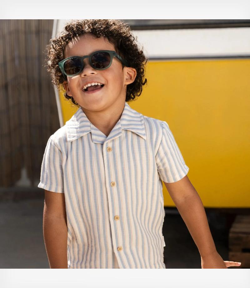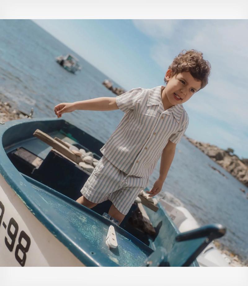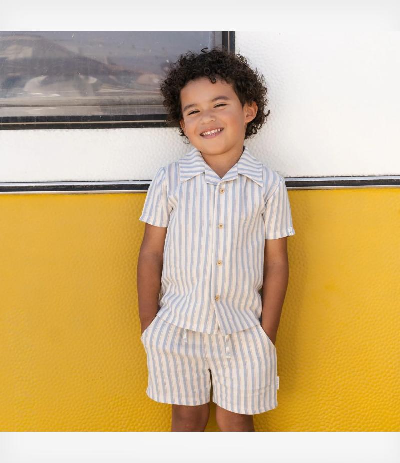 Οι χαρούμενες πολύχρωμες ρίγες του δίνουν ενέργεια και χαρά σε κάθε περιπέτεια, το όμορφο γιακαδάκι του και οι διακριτικές τσέπες στο στήθος προσθέτουν στυλ, ενώ τα κουμπάκια με όψη ξύλου προσφέρουν μια φυσική και κομψή πινελιά.