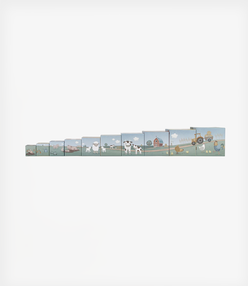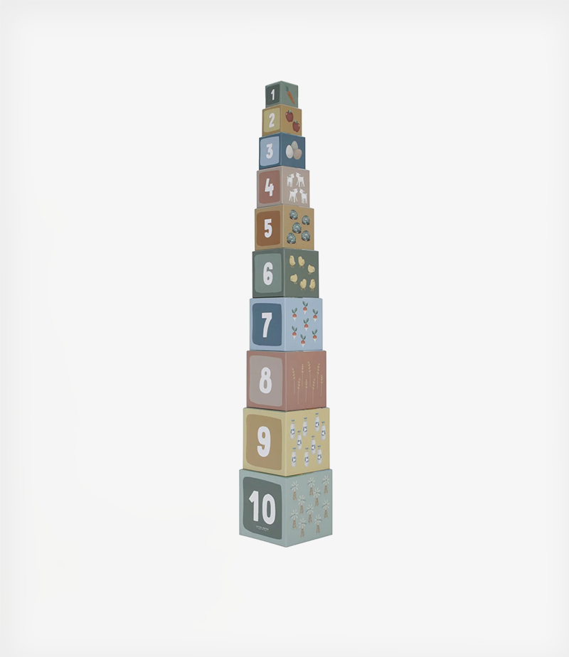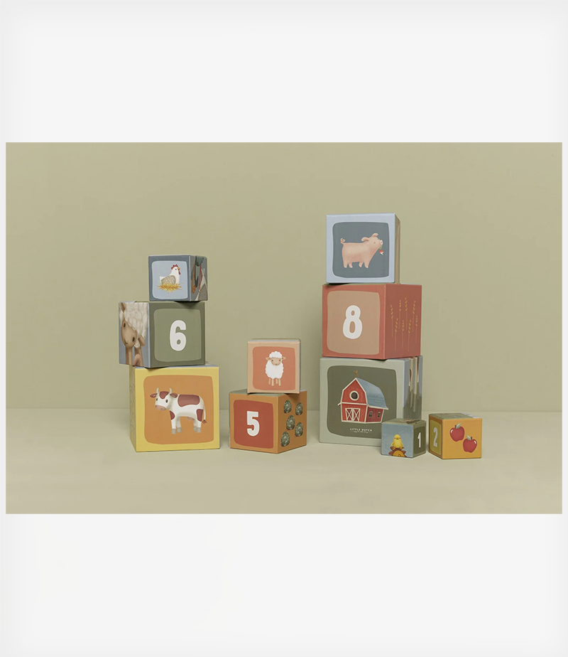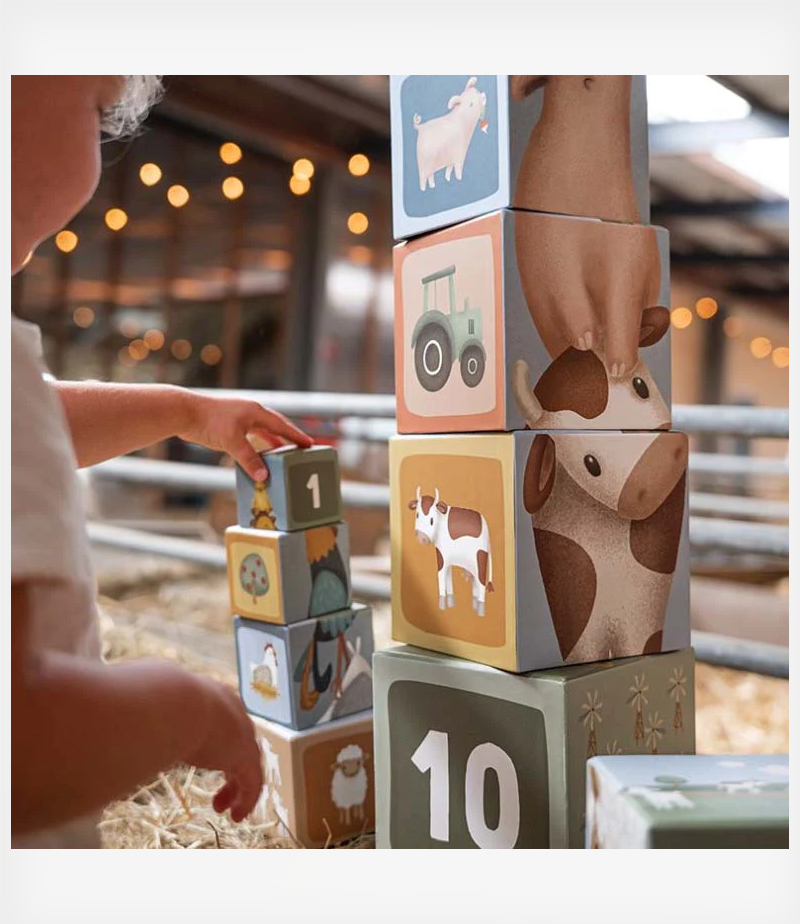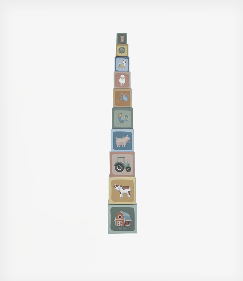 Αυτή η πυραμίδα ταξινόμησης της Little Dutch, με ζωάκια που θα βρείτε στη φάρμα, μαθαίνει στο παιδί να κάνει παζλ, να ισορροπεί, να ταξινομεί τους κύβους και παράλληλα να μετράει ως το 10. Χάρτινοι κύβοι στοίβαξης με διαφορετικές εικόνες σε κάθε πλευρά, οι οποίες όμως ταιριάζουν απόλυτα.