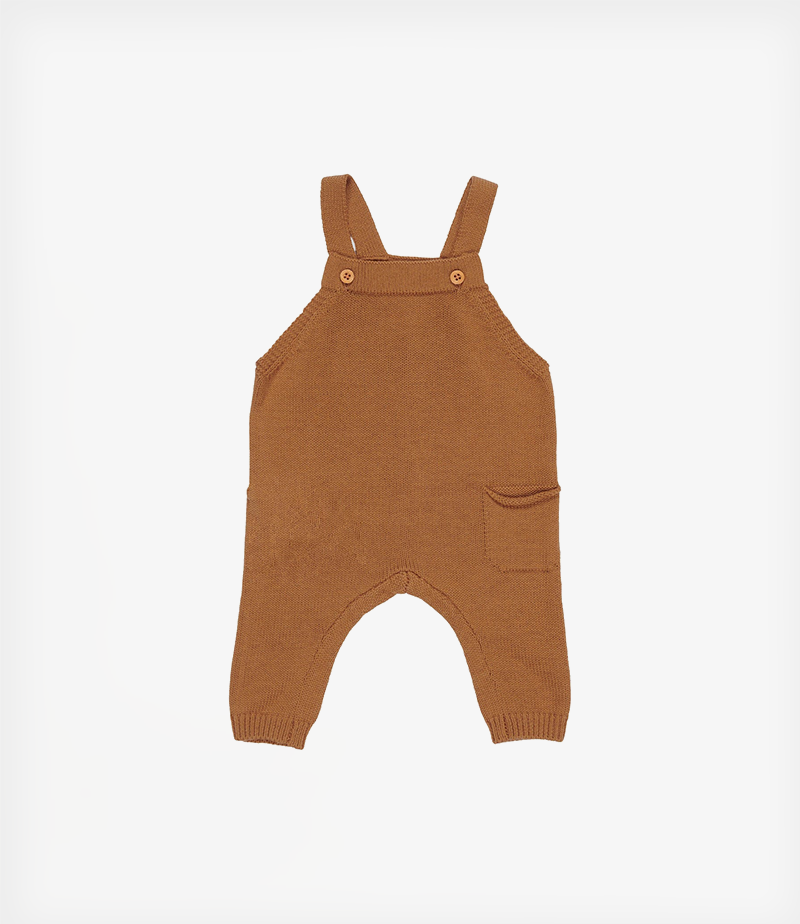 Αυτή η πλεκτή σαλοπέτα με ξύλινα κουμπάκια και τσέπες στο μπροστινό μέρος θα δείχνει καταπληκτική στο μικρό σας!