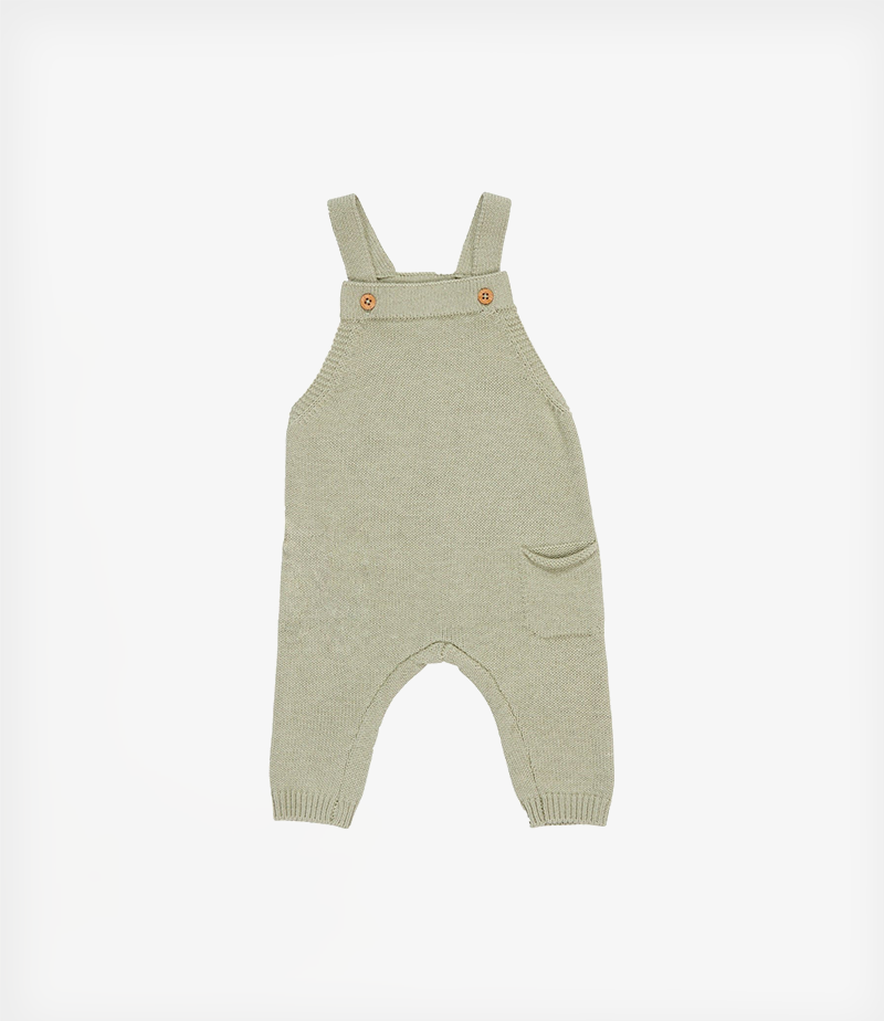 Αυτή η πλεκτή σαλοπέτα με ξύλινα κουμπάκια και τσέπες στο μπροστινό μέρος θα δείχνει καταπληκτική στο μικρό σας!