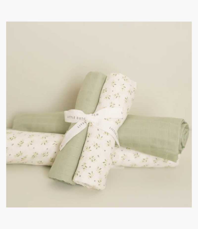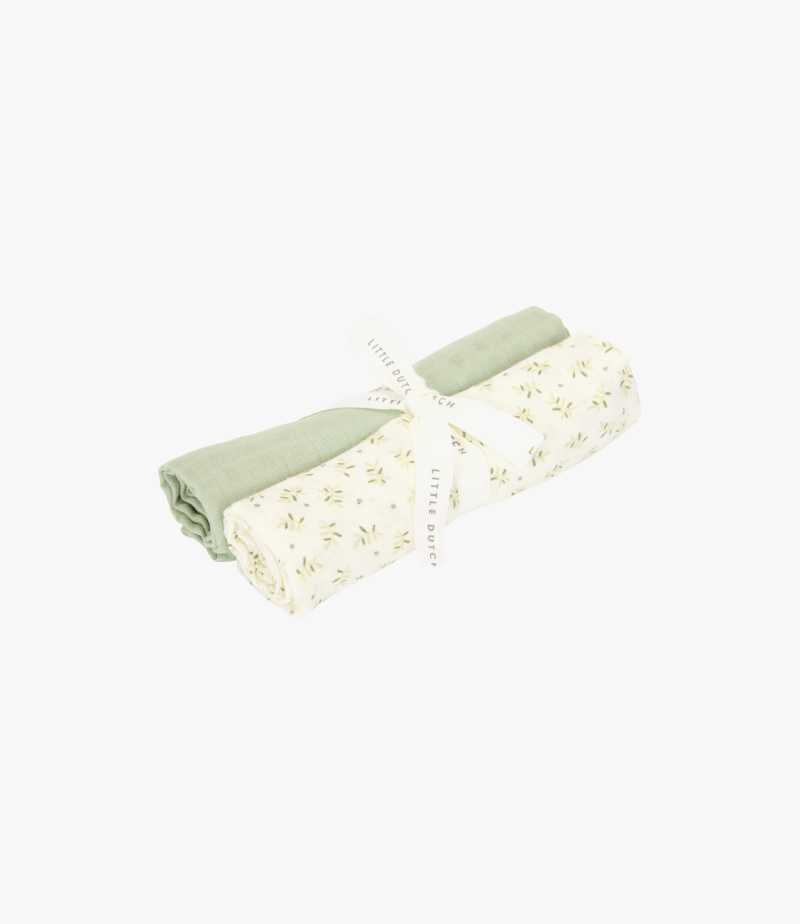 Little Dutch Σετ 2 πανάκια αγκαλιάς από μουσελίνα Blueberry Leaves / Sage 70×70
