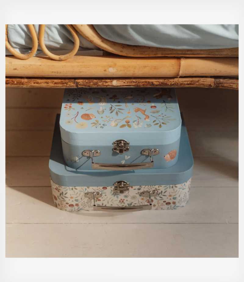 Αυτό το απολαυστικό δίδυμο διαθέτει δύο βαλιτσάκια παιχνιδιού που κοσμούνται με γοητευτικές απεικονίσεις των Forest Friends, συμπεριλαμβανομένης μιας αξιολάτρευτης αλεπούς που θα εξάψει τη φαντασία του παιδιού σας. Στο εσωτερικό, η υπέροχη επένδυση προσθέτει μια πινελιά μαγείας σε κάθε περιπέτεια.