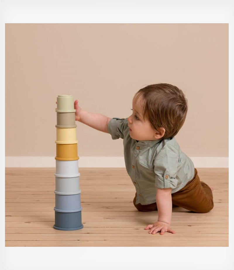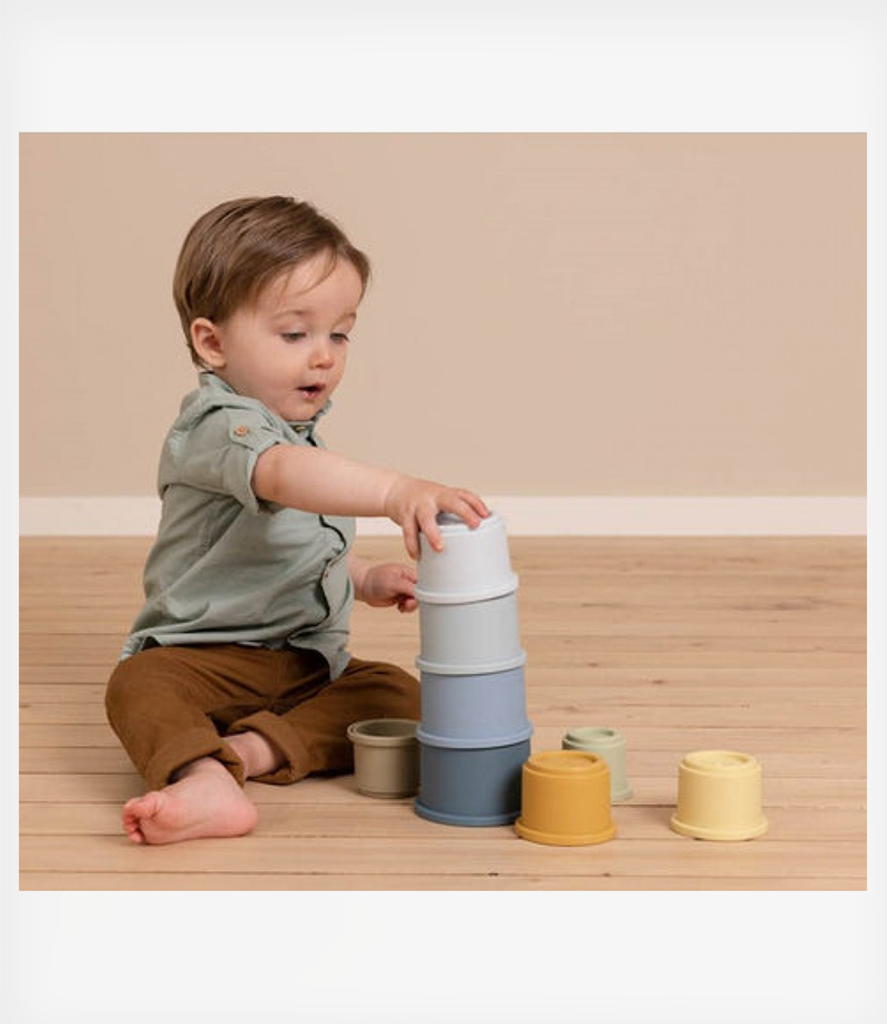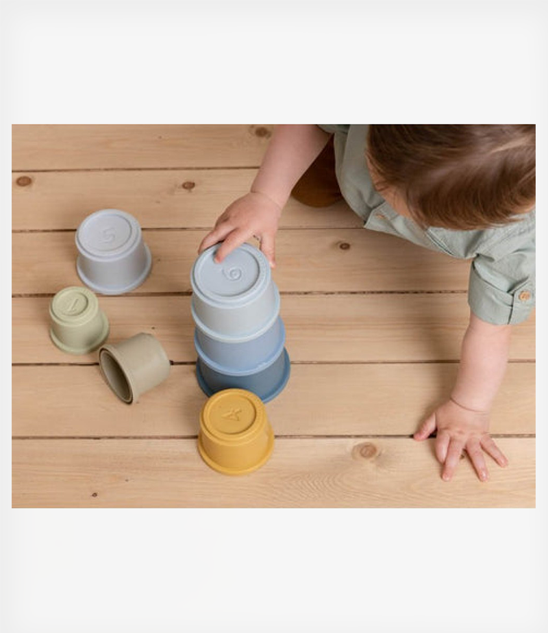 Αυτό το σετ με 8 κύπελλα προκαλεί το νήπιό σας να τα στοιβάζει το ένα πάνω στο άλλο. Πόσο μεγάλη θα είναι η χαρά όταν ολοκληρωθεί ο πύργος! Εγγυημένες ώρες διασκέδασης. Τα 8 κύπελλα στοίβαξης έχουν έναν αριθμό στο επάνω μέρος και ταιριάζουν εύκολα μεταξύ τους για να αποφύγετε την πτώση του πύργου. Το μικρό σας θα μάθει για τους αριθμούς και θα αναπτύξει τις λεπτές κινητικές του δεξιότητες. Στοιβάξτε και δημιουργήστε τον πύργο σε ένα παρκοκρέβατο, στο πάτωμα ή στην μπανιέρα ή την άμμο. Χάρη στο ευέλικτο υλικό μπορεί να χρησιμοποιηθεί οπουδήποτε. Τοποθετήστε τα μικρά κυπελάκια μέσα στα μεγαλύτερα για εύκολη αποθήκευση.