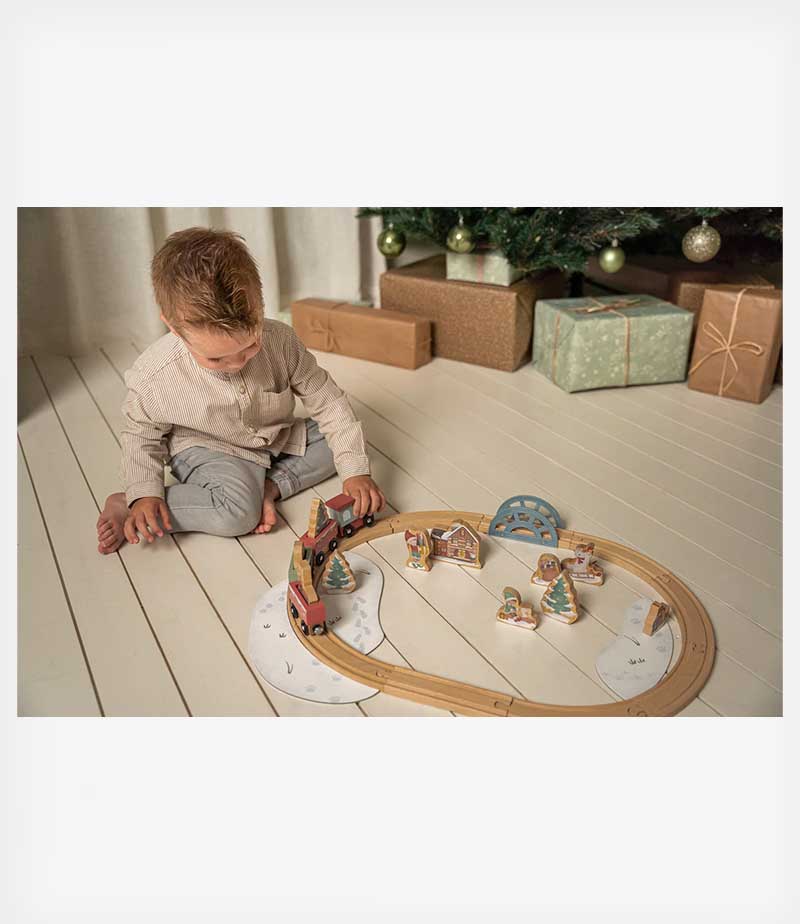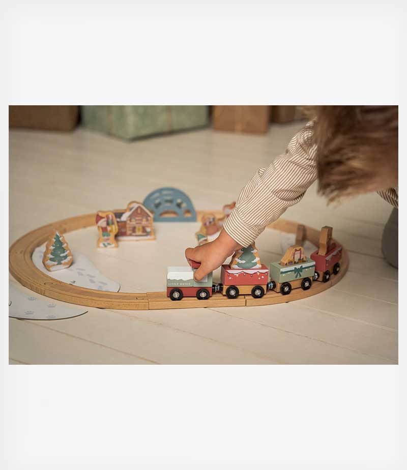 Little Dutch Σετ ξύλινο τρενάκι με ράγες X-mas FSC