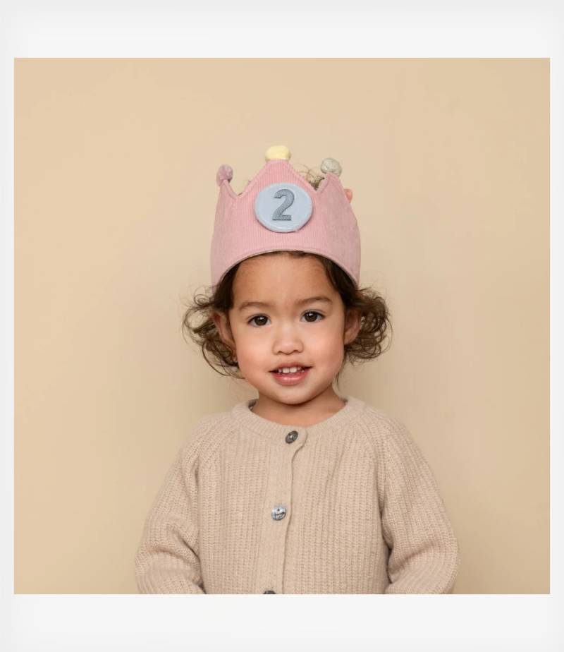 Το στέμμα είναι κατασκευασμένο από μαλακό ύφασμα με μαξιλαράκι και ραβδώσεις σε ανοιχτό ροζ χρώμα, το οποίο ολοκληρώνεται με χρωματιστά πομπόν. Το κλείσιμο με Velcro επιτρέπει στο στέμμα να προσαρμόζεται και να μεγαλώνει μαζί με το παιδί σας. Παρακολουθήστε το μικρό σας να φοράει περήφανα το στέμμα, αναδεικνύοντας την ηλικία του σε κάθε χαμόγελο και χαχανητό. Καλή διασκέδαση!