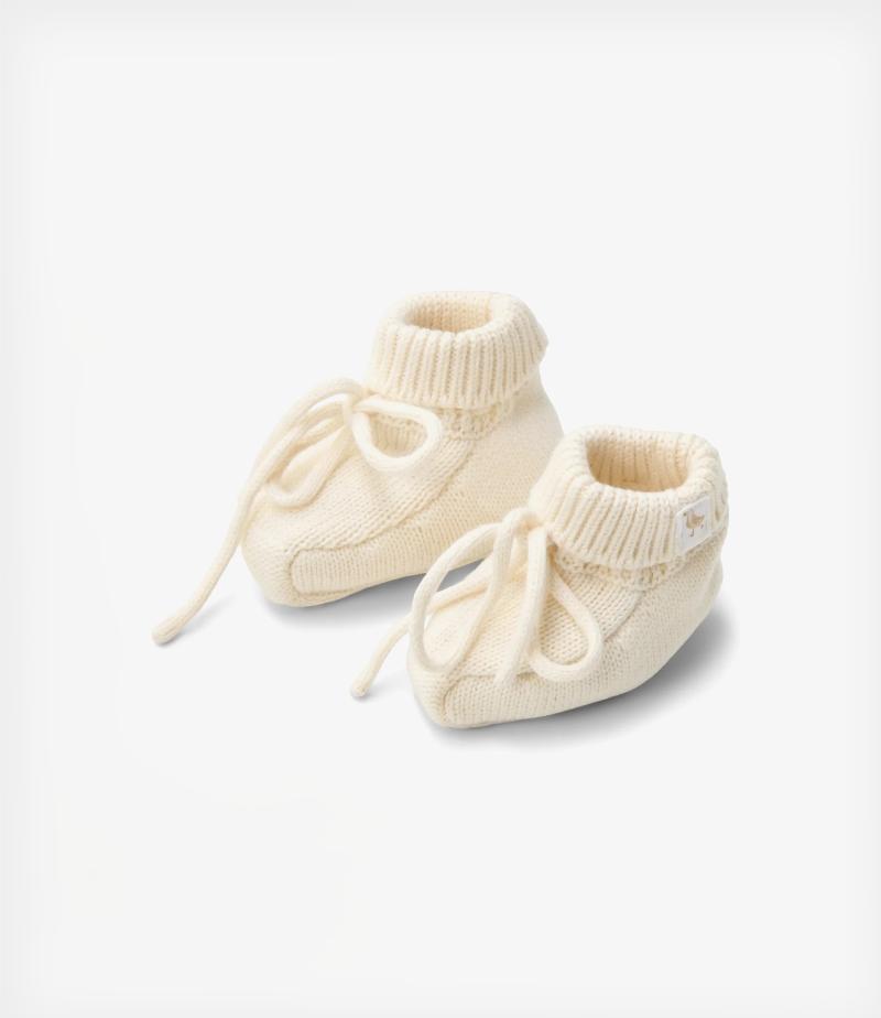 Αυτά τα πλεκτά μποτάκια αγκαλιάς σε ουδέτερη κρεμ απόχρωση είναι ιδανικά για τα μικρά ποδαράκια που ακόμη γνωρίζουν τον κόσμο.