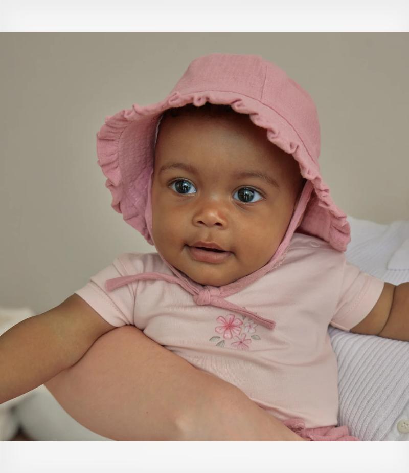 Έτοιμο για ηλιόλουστες περιπέτειες, αυτό το αέρινο καπέλο ήλιου σε ροζ απόχρωση κρατάει τα μικρά κεφαλάκια δροσερά και στιλάτα!