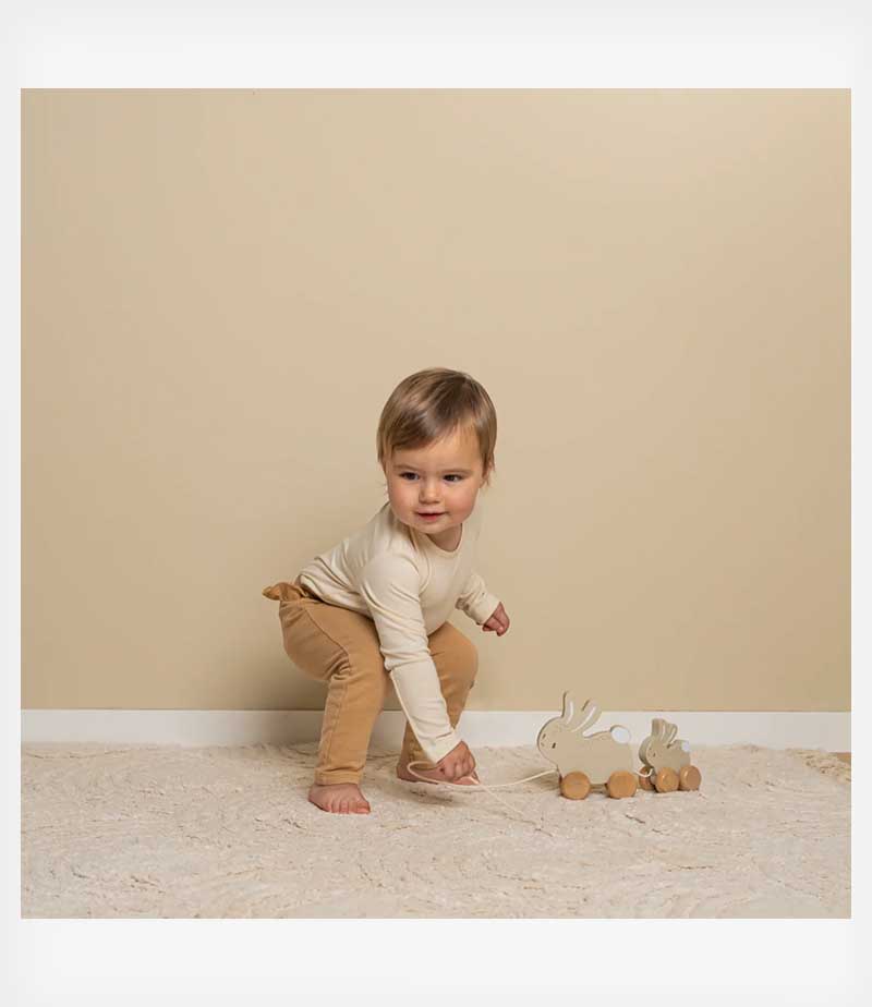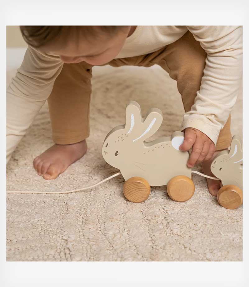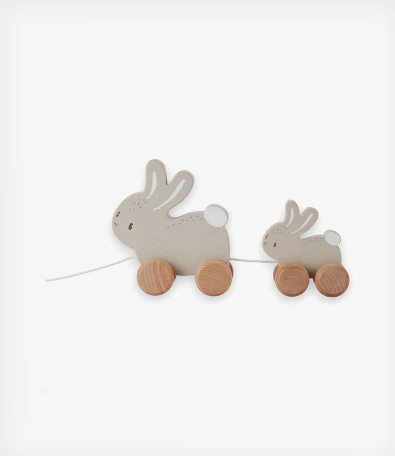 Τραβήξτε το σχοινί και ξεκινήστε μαζί την περιπέτεια! Αυτό το παιχνίδι είναι κατασκευασμένο από ανθεκτικό ξύλο και δεν θα κουραστεί ποτέ να παίζει. Το χαρούμενο δίδυμο από τη συλλογή Baby Bunny θα ενθαρρύνει το μικρό σας να περπατήσει και θα βοηθήσει στην ανάπτυξη των κινητικών δεξιοτήτων του.
