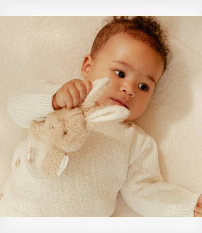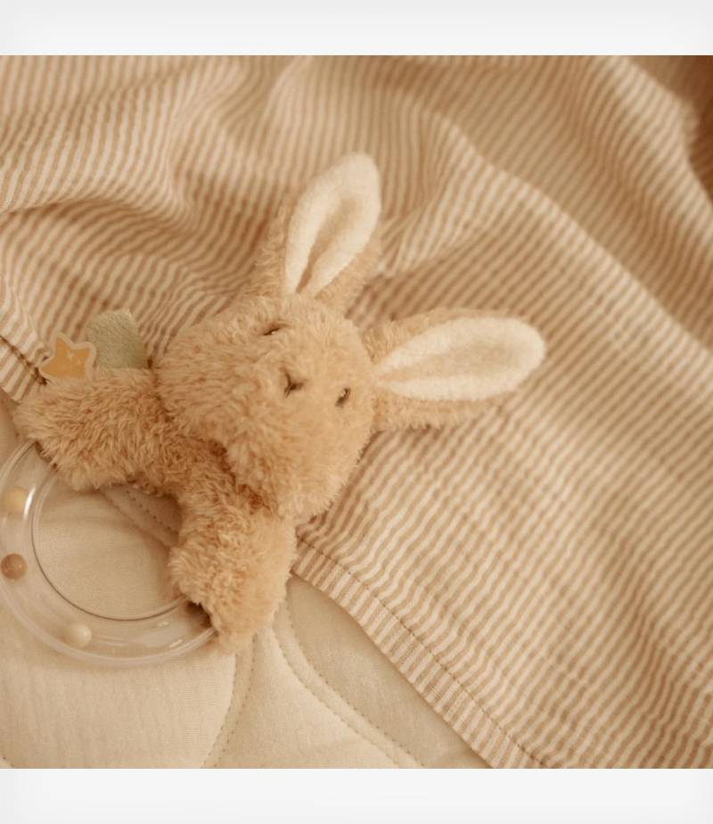 Αυτή η μαλακή κουδουνίστρα κρατάει ένα διασκεδαστικό παιχνίδι που θα βγάλει τους πιο γλυκούς ήχους όταν το κουνάτε. Το αξιολάτρευτο κουνελάκι σας προσκαλεί να παίξετε μαζί του.
