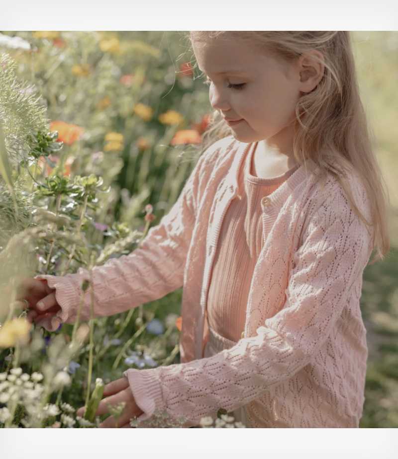 Φτιαγμένο από απαλό οργανικό βαμβάκι, διαθέτει αέρινη υφή, βολάν στα μανίκια και ένα μοναδικό κουμπί σε σχήμα λουλουδιού για μια γλυκιά πινελιά.