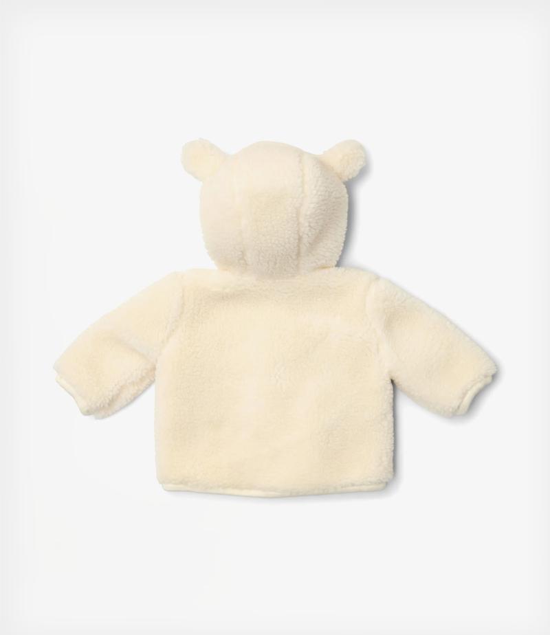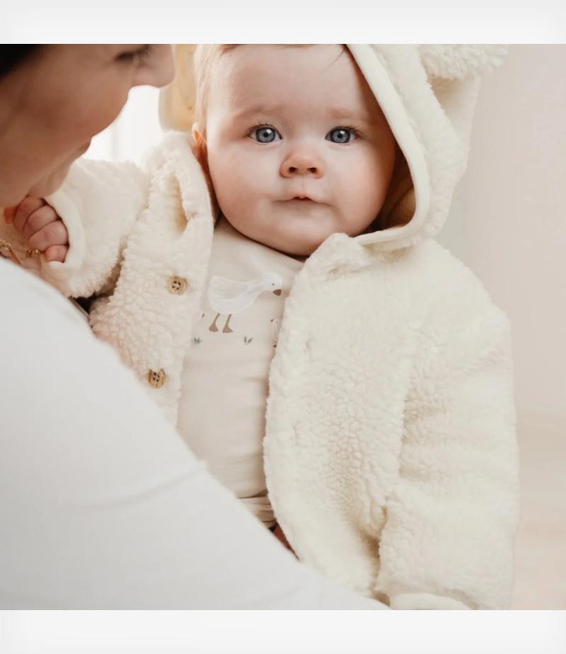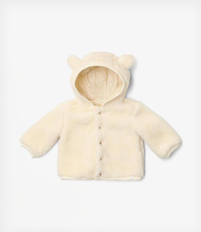 Με αφράτο κρεμ ύφασμα teddy και χαριτωμένα αυτάκια στην κουκούλα, το μικρό σας θα μοιάζει με λούτρινο κουκλάκι! Η εσωτερική φόδρα από απαλό οργανικό βαμβάκι κρύβει ένα παιχνιδιάρικο μοτίβο Little Goose, ενώ τα κουμπιά με όψη ξύλου προσθέτουν μια φυσική, διαχρονική πινελιά.
