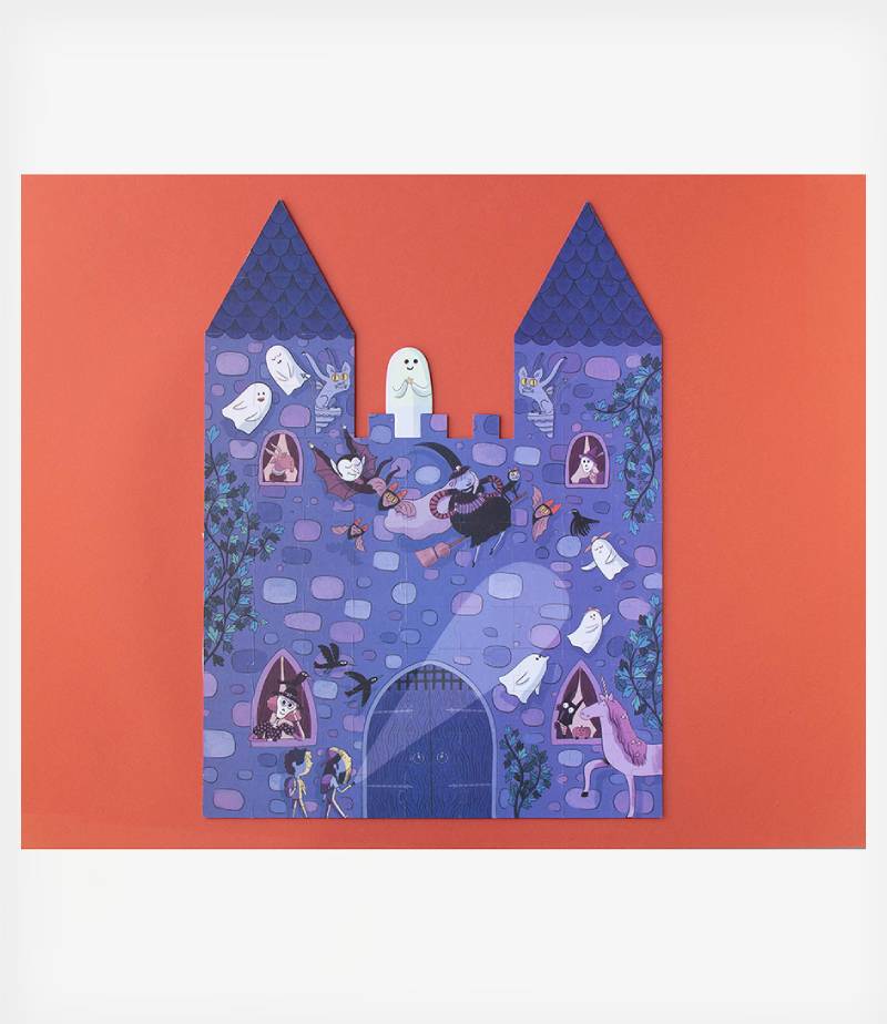Μπου! Ποιος τολμά να μπει στο στοιχειωμένο κάστρο; Συναρμολογήστε το παζλ, κλείστε τα φώτα και… έκπληξη! Τα φαντασματάκια φωσφορίζουν στο σκοτάδι!