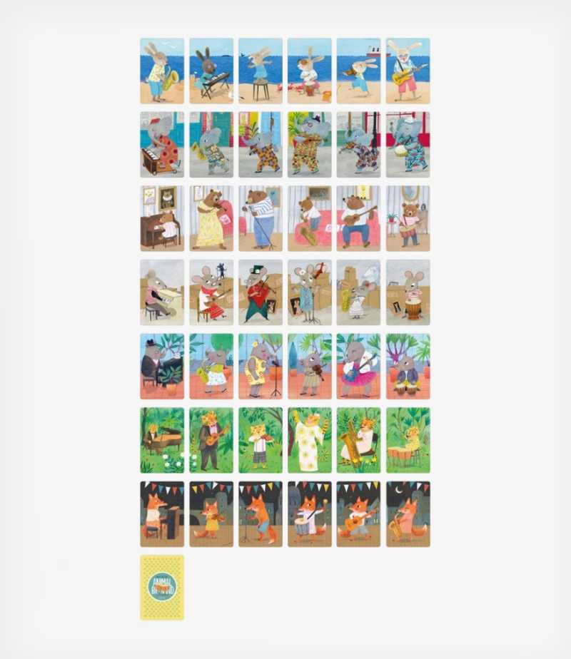 Ας παίξουμε μουσική! Σε ποια οικογένεια μουσικών θα ανήκετε; Αρκούδες, ελέφαντες, τίγρεις, ρινόκεροι, αλεπούδες, λαγοί, ποντίκια… Όλοι ενώνονται για να σχηματίσουν μια μεγάλη μπάντα! Μαζέψτε τα όλα με αυτό το οικογενειακό παιχνίδι καρτών. Όποιος μαζέψει όλα τα μέλη της ίδιας οικογένειας κερδίζει!