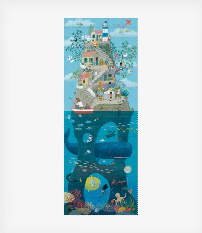 Αφού κατασκευάσετε το παζλ, χρησιμοποιήστε τις 48 εικονογραφημένες κάρτες που περιέχονται στη συσκευασία για να εφεύρετε τα δικά σας μοναδικά παιχνίδια. Στο κουτί περιλαμβάνονται και οδηγίες με ορισμένες προτάσεις παιχνιδιών. Το Τσάι Δίπλα στη Θάλασσα, σας προτρέπει να αφήσετε το μυαλό σας να περιπλανηθεί σε ένα μοναδικά, φανταστικό κόσμο, γεμάτο λεπτομέρειες και ανοικτό σε χίλιες και μία ερμηνείες.