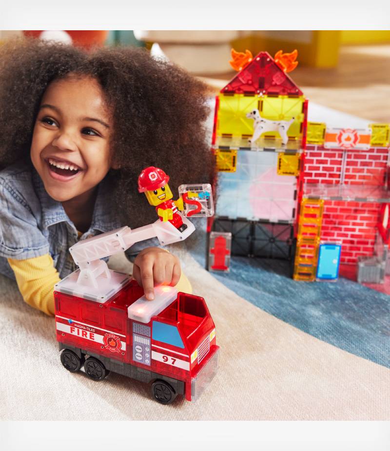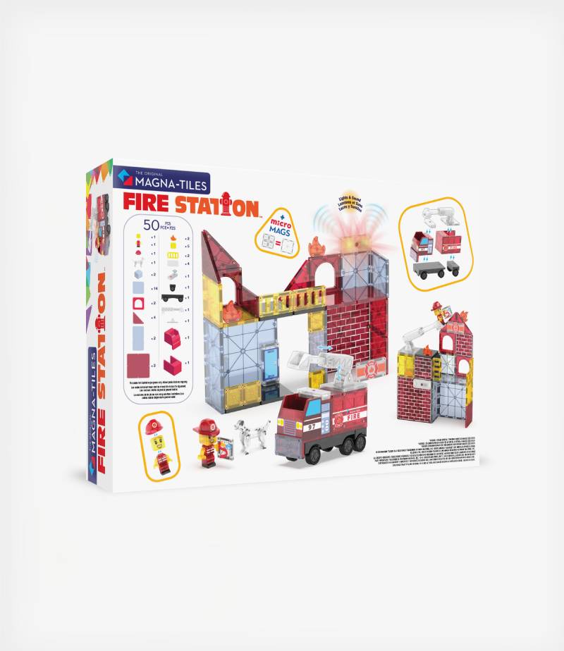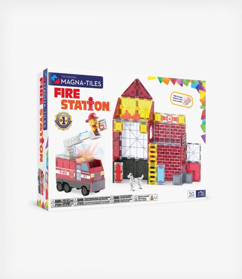 Το Fire Station 50-Piece Set της MAGNA-TILES μεταμορφώνει το παιχνίδι ρόλων σε μια καθηλωτική εμπειρία πυρόσβεσης! Με φως και ήχο, ένα πυροσβεστικό όχημα με τηλεσκοπική σκάλαφιγούρα πυροσβέστησκύλο Δαλματίας και μαγνητικά πλακίδια, τα παιδιά δημιουργούν τον δικό τους πυροσβεστικό σταθμό και σενάρια διάσωσης, καλλιεργώντας τη φαντασία, τη δημιουργικότητα και τη λογική σκέψη.