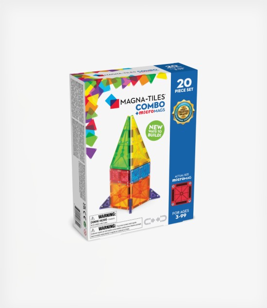 Πλακίδια microMAGS και κλασσικά πλακίδια… Κάποιοι συνδυασμοί απλά λειτουργούν! Η σειρά MAGNA-TILES Combo 20 κομματιών τα περιέχει όλα και δίνει τη δυνατότητα στα παιδιά να δημιουργήσουν ιδιαίτερες κατασκευές. Ανακαλύψτε νέους τρόπους να μαθαίνετε, να παίζετε, να χτίζετε και να δημιουργείτε, με αυτό το νέο σετ πλακιδίων, που αποτελεί κορυφαίο σετ εκμάθησης STEAM.