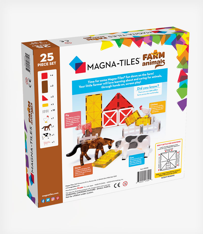 Ο πετεινός λαλάει! Ήρθε η ώρα να έρθουμε μαζί μας στη φάρμα καθώς ζωντανεύουμε το ευφάνταστο παιχνίδι με το νέο σετ Farm Animals, μέρος της συλλογής Magna-Tiles® Animal. Τα μικρά χεράκια θα απολαύσουν τη φροντίδα των ζώων μέσω του χρόνου παιχνιδιού χωρίς οθόνη.