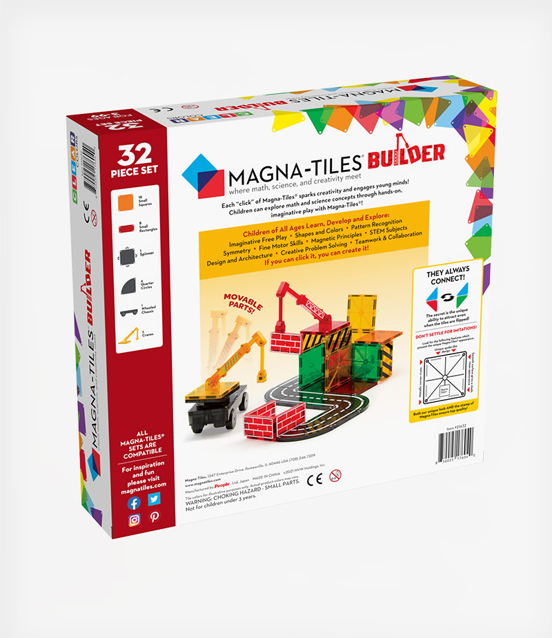 Συμβατά με όλα τα Magna-Tiles : Για να δώσετε στο παιδί σας ακόμη μεγαλύτερη δημιουργική ελευθερία, μπορείτε να το συνδυάσετε με οποιοδήποτε άλλο σετ Magna-Tiles! Όλα τα μαγνητικά πλακίδια έχουν τις ίδιες διαστάσεις για να μπορούν να συνδυάζονται με όλα τα υπόλοιπα σετ χωρίς περιορισμούς!