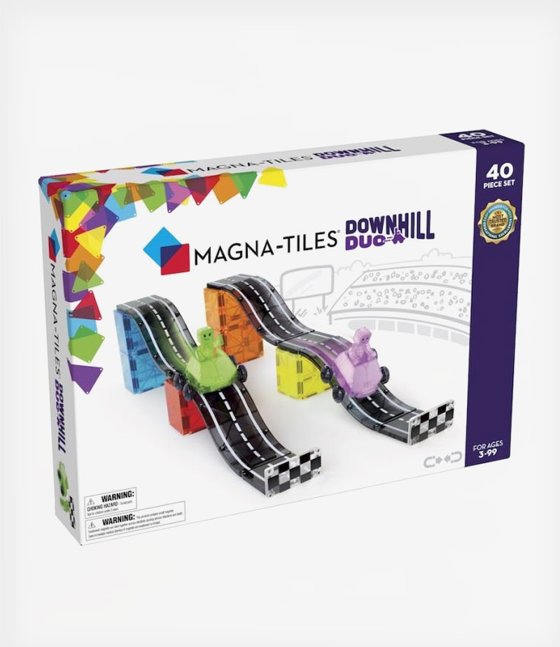 Με το νέο σετ MAGNA-TILES® Downhill Duo 40-Piece, τα παιδιά βρίσκονται στη θέση του οδηγού! Τα μικρά παιδιά μπορούν να μετατρέψουν την κατασκευή τους MAGNA-TILES® σε μια συναρπαστική περιπέτεια κατάβασης. Ψάχνετε για έναν νέο τρόπο να εμπνεύσετε τη φαντασία τους, να αναπτύξετε τις κινητικές τους δεξιότητες και να υποστηρίξετε τη μάθησή τους στο STEAM; Κουμπώστε και φανταστείτε τις δυνατότητες με νέες Ράμπες, Δρόμους, Δοχεία και Φιγούρες!