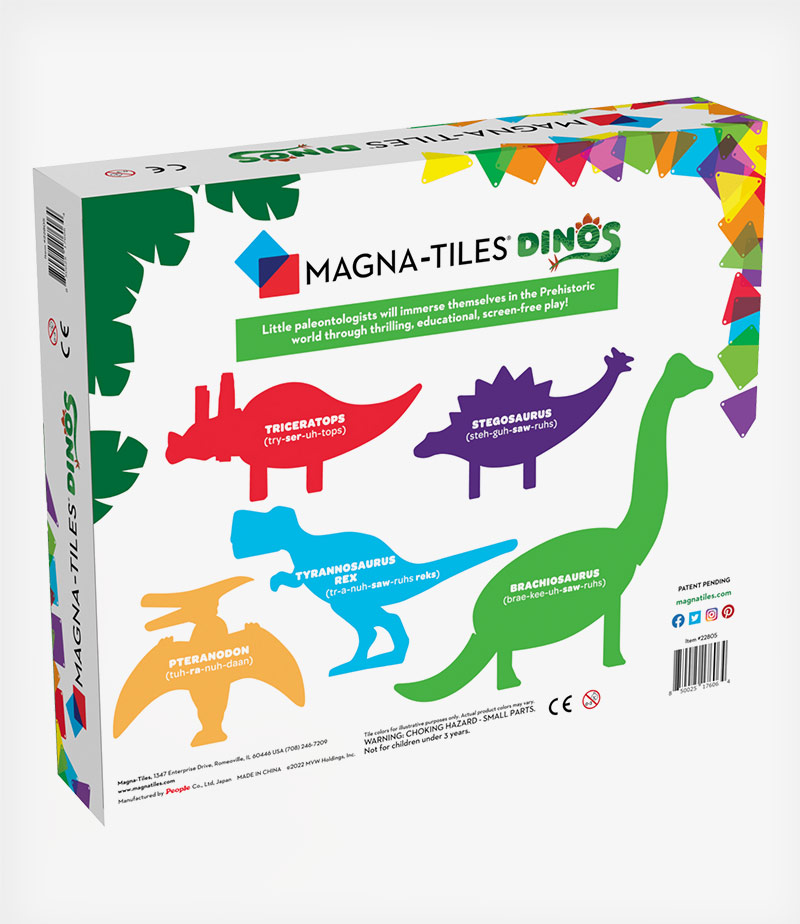 - Προτεινόμενα από εκπαιδευτικούς : Παίζω και μαθαίνω με το σετ 5 τεμαχίων Magna-Tiles Dinos! Τα συγκεκριμένα μαγνητικά παιχνίδια προτείνονται από εκπαιδευτικούς σε όλο τον κόσμο, χάρη στην ικανότητά τους να βοηθούν στην κατανόηση τριγωνομετρικών σχημάτων, επιστημών, μαθηματικών και στην καλλιέργεια της φαντασίας!