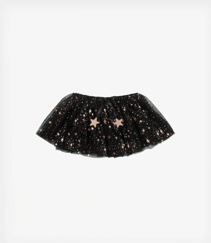 - Στρώματα από εξαιρετικά απαλό μαύρο τούλι διακοσμημένο με στάμπα χρυσού αστεριού, με λεπτομέρεια σατέν φιόγκο και χρυσά αστέρια από glitter