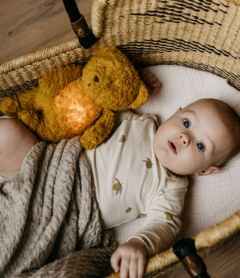 Περιλαμβάνει έναν έξυπνο ανιχνευτή θορύβων, σχεδιασμένο για στιγμές που το παιδί σας ξυπνά ξαφνικά. Μόλις το παιδί σας αρχίσει να κουνιέται, ενεργοποιείται ένας ασφαλής, φυσικός, ροζ θόρυβος, που καταπραΰνει το παιδί σας, διασφαλίζοντας ότι θα επιστρέψει σε έναν ξεκούραστο ύπνο. Το αρκουδάκι σβήνει πάντα μετά από 30 λεπτά και μεταβαίνει αυτόματα σε κατάσταση αναμονής 3 ωρών.