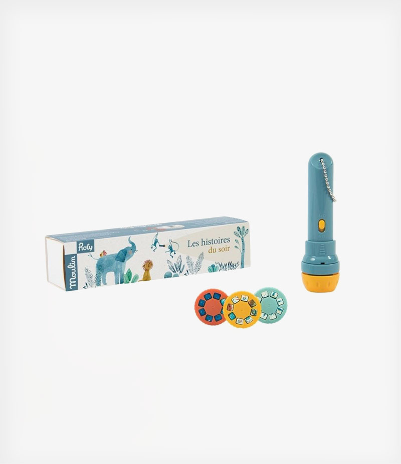 Αυτός ο φακός είναι εύκολος στη χρήση: τοποθετήστε ένα δίσκο στο φακό, ανάψτε το διακόπτη και προβάλλετε τις εικόνες σε τοίχο ή οροφή. Με το δάχτυλό σας, γυρίστε τον δίσκο για να εμφανίζονται οι εικόνες μία μετά την άλλη, ενώ λέτε στο παιδί σας την ιστορία.
