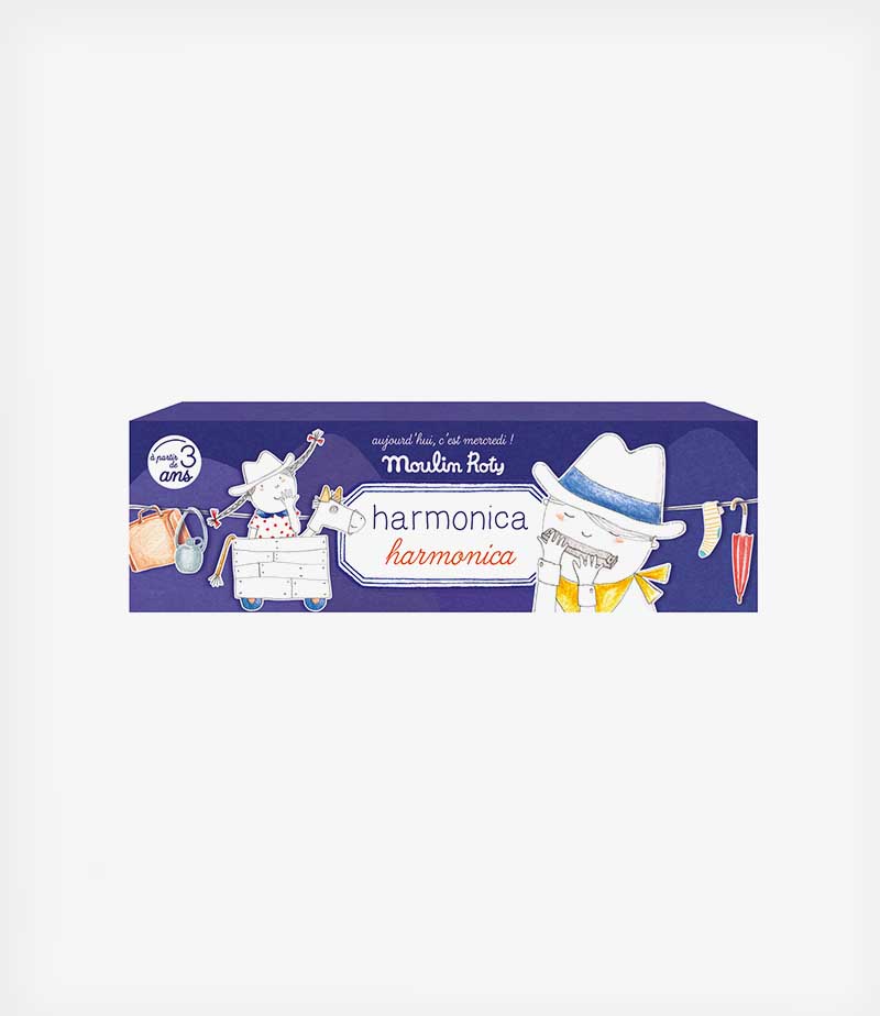 Μεταλλική φυσαρμόνικα από την Moulin Roty. Βελτιώνει τη μουσική συνείδηση, τις κινητικές δεξιότητες και τη δημιουργικότητα του παιδιού.