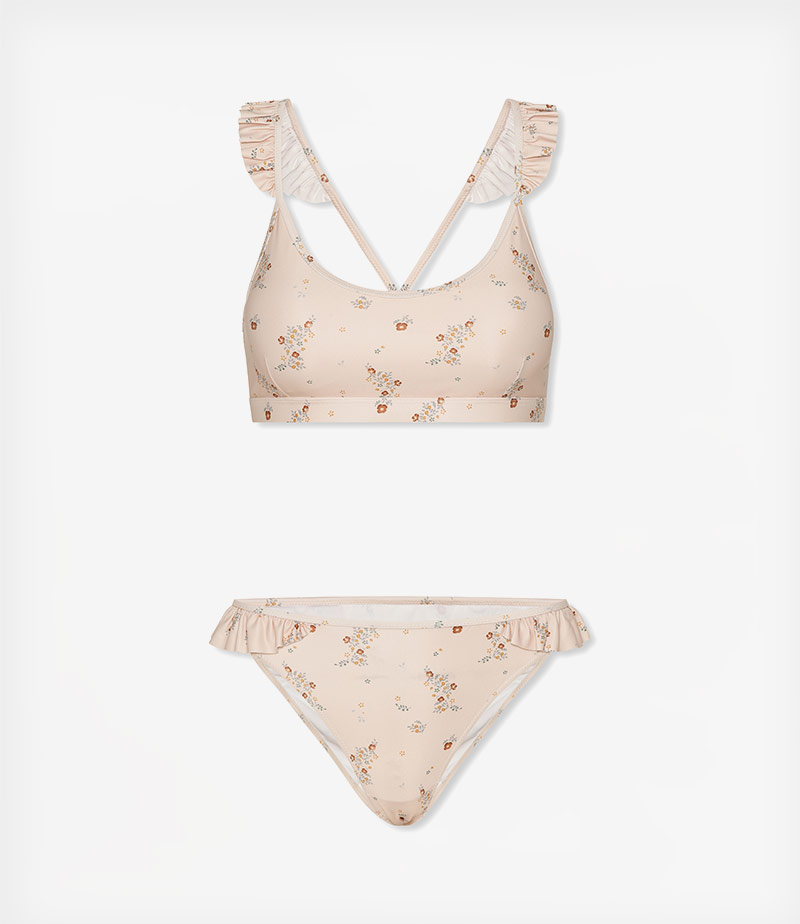 Αυτό το μπικίνι της μαμάς έχει μια χαριτωμένη και γυναικεία έκφραση με το φρενάρισμα του στον ώμο και στο ισχίο.