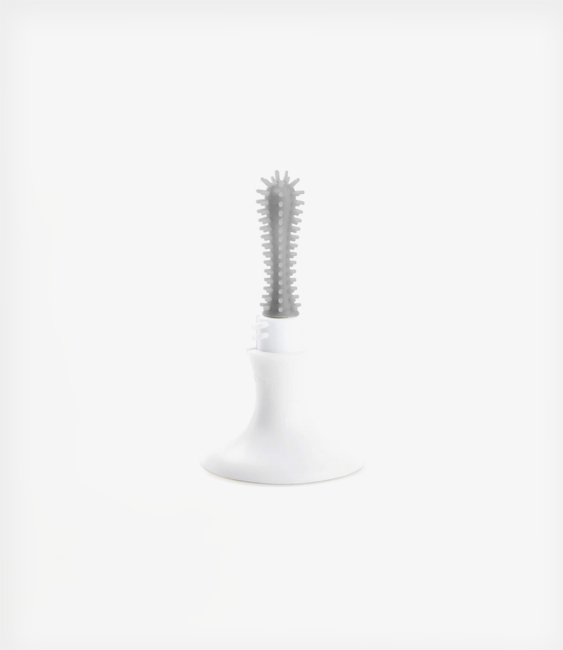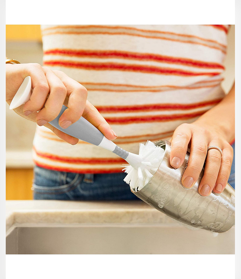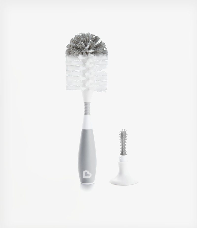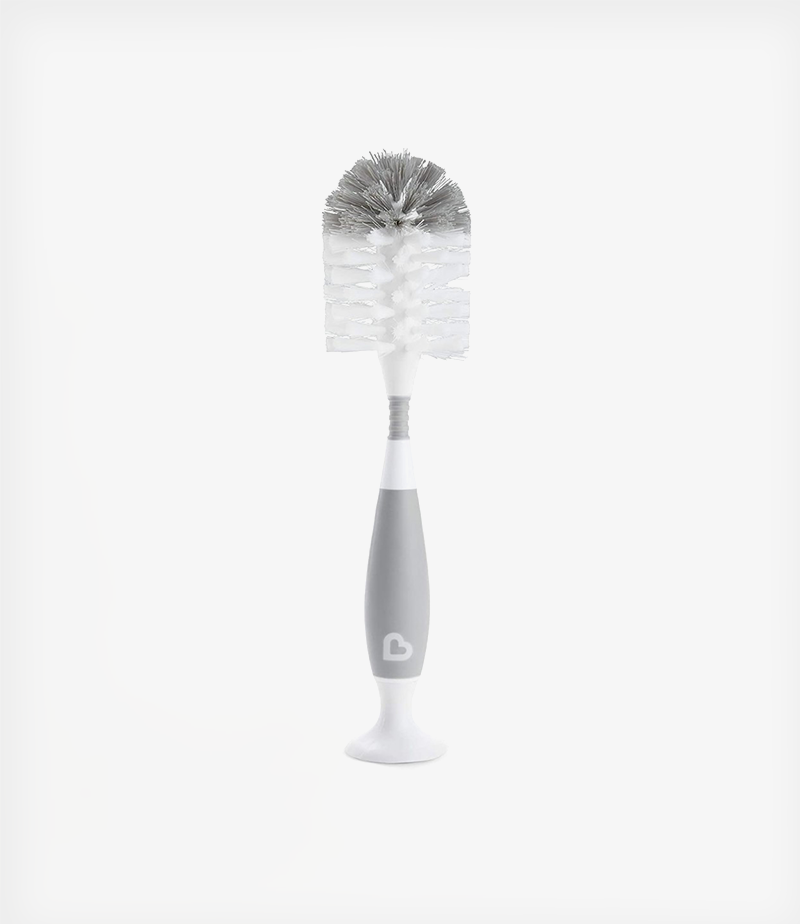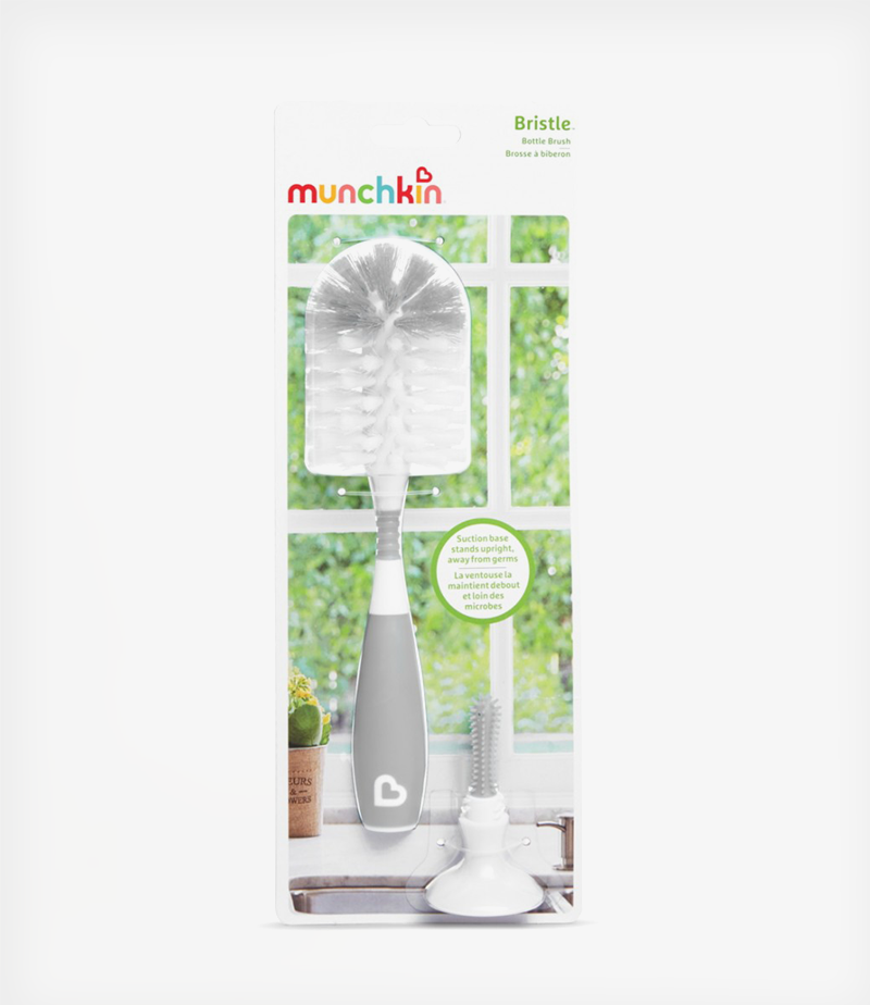 Η Bristle βούρτσα διαθέτει βεντούζα στη βάση της, ώστε, όταν τελειώνετε το τρίψιμο, απλά να την τοποθετείτε όρθια στον πάγκο για γρήγορο στέγνωμα και μακρυά από τα μικρόβια. Η αντιολισθητική λαβή προσφέρει σταθερό κράτημα, ενώ οι τρίχες είναι αρκετά σκληρές για τη βρωμιά, αλλά απαλές για το μπιμπερό του μωρού σας. Λαμβάνοντας υπόψιν όλα τα σχήματα και μεγέθη των μπουκαλιών, η βούρτσα είναι σχεδιασμένη με νέο, ευλύγιστο «λαιμό», για να σας βοηθήσει να καθαρίσετε εύκολα κάθε μπιμπερό. Υπάρχει, επίσης, μια βολική βούρτσα με μαλακή λαστιχένια θηλή μέσα στη λαβή, κατάλληλη για τον καθαρισμό εξαρτημάτων αντλίας, βαλβίδων και άλλων μικρών αξεσουάρ των μπουκαλιών.